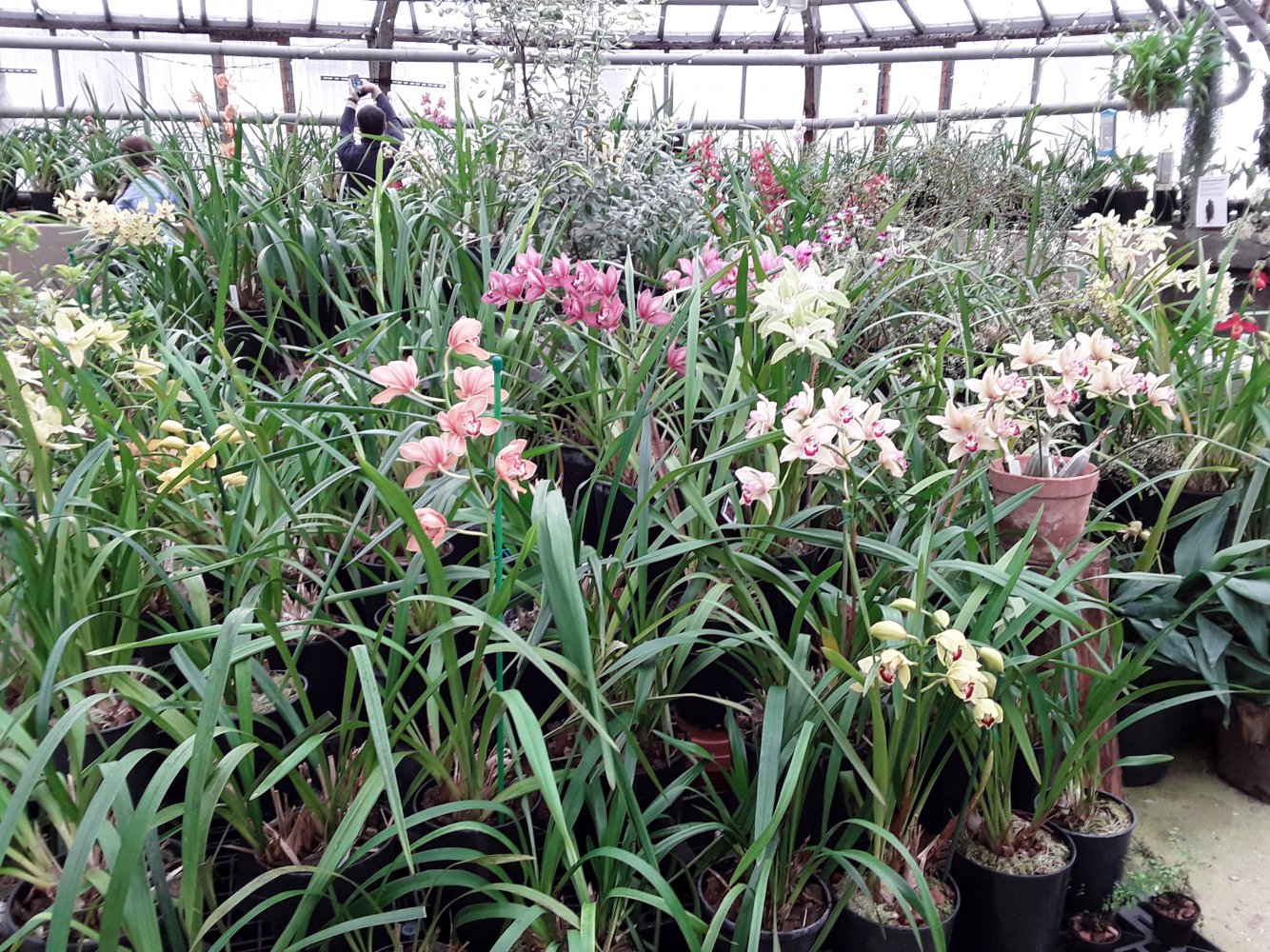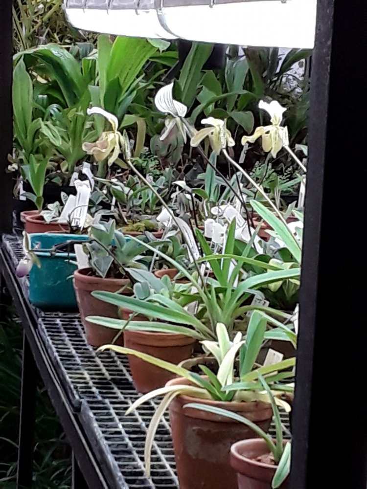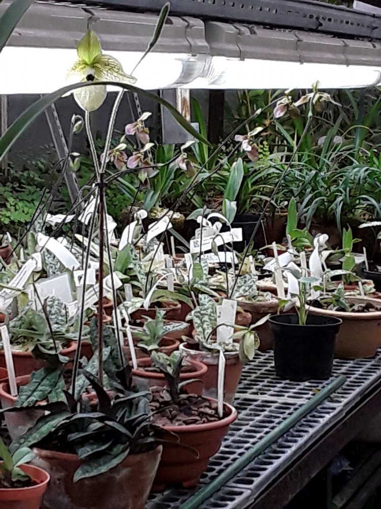 В основном представлены цветущие цимбидиумы, небольшое колличество пафиопедилюмов и фрагмипедиумов, остальные орхиедеи в единичных экзеплярах.