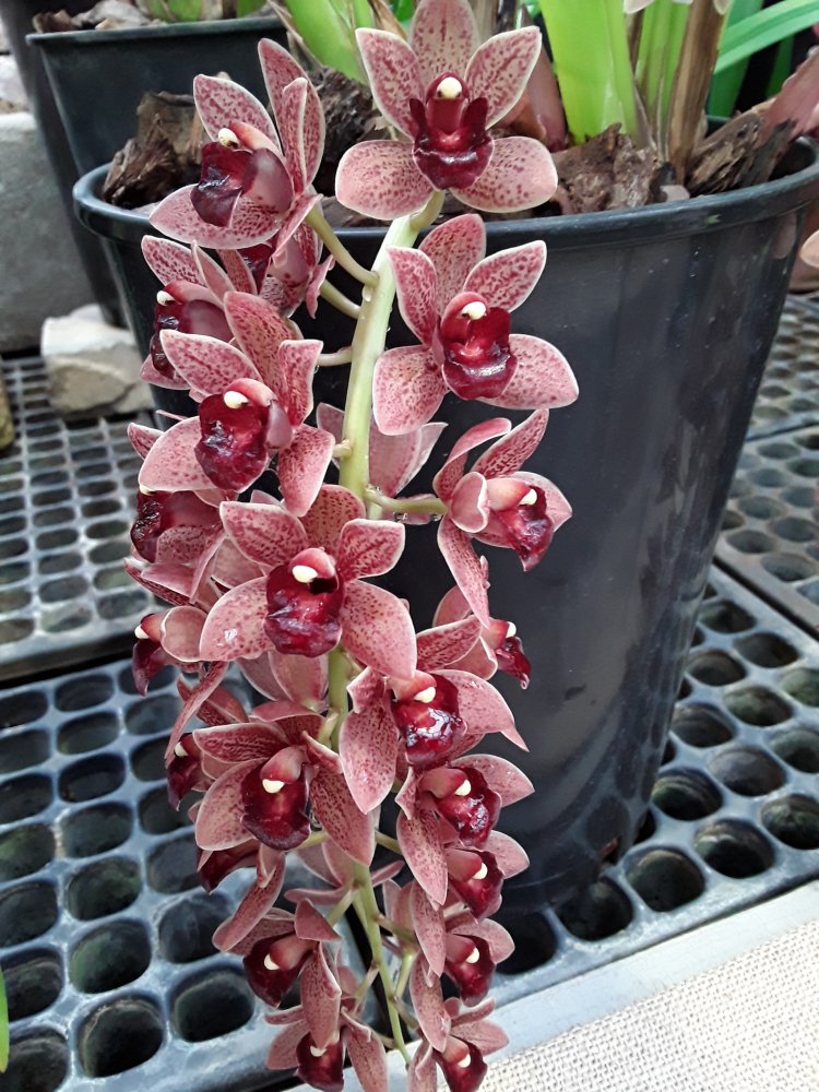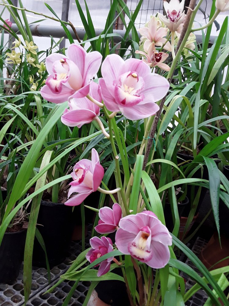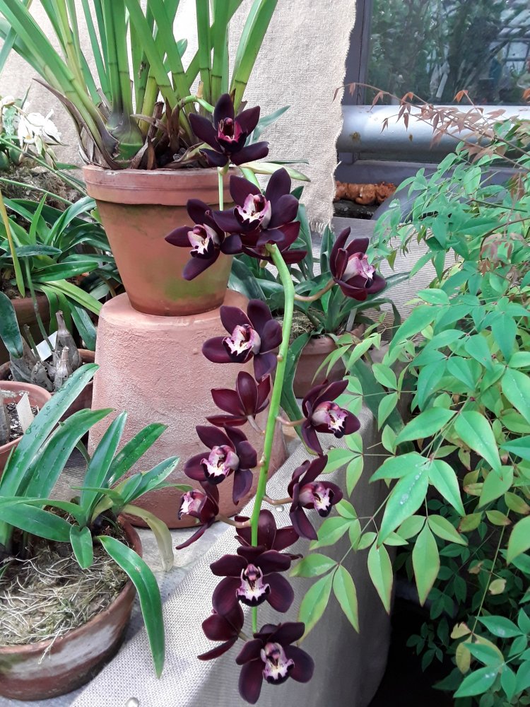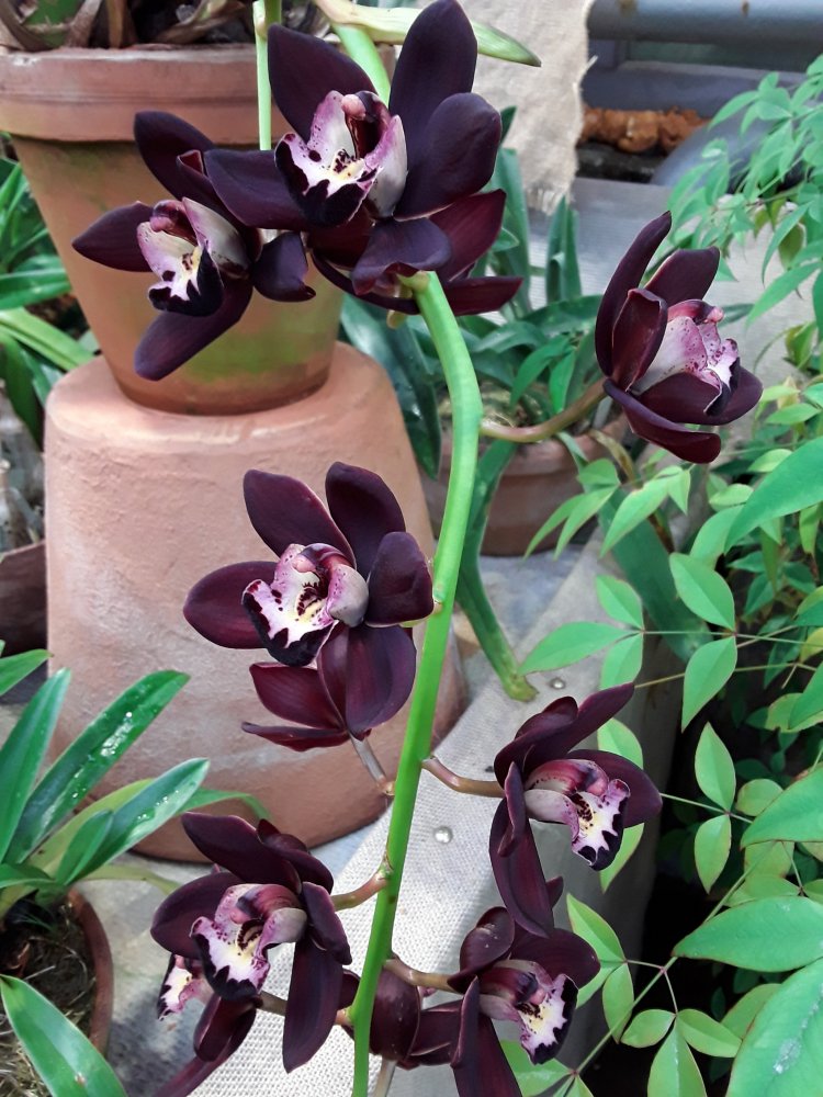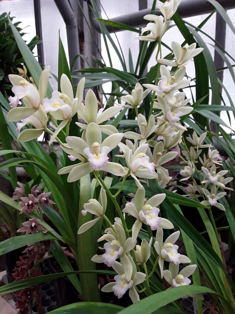 А вот эти цимбидиумы с различными очень приятными ароматами. Последний точно Cymbidium Kiwi Midnight, не крупный и очень ароматный.