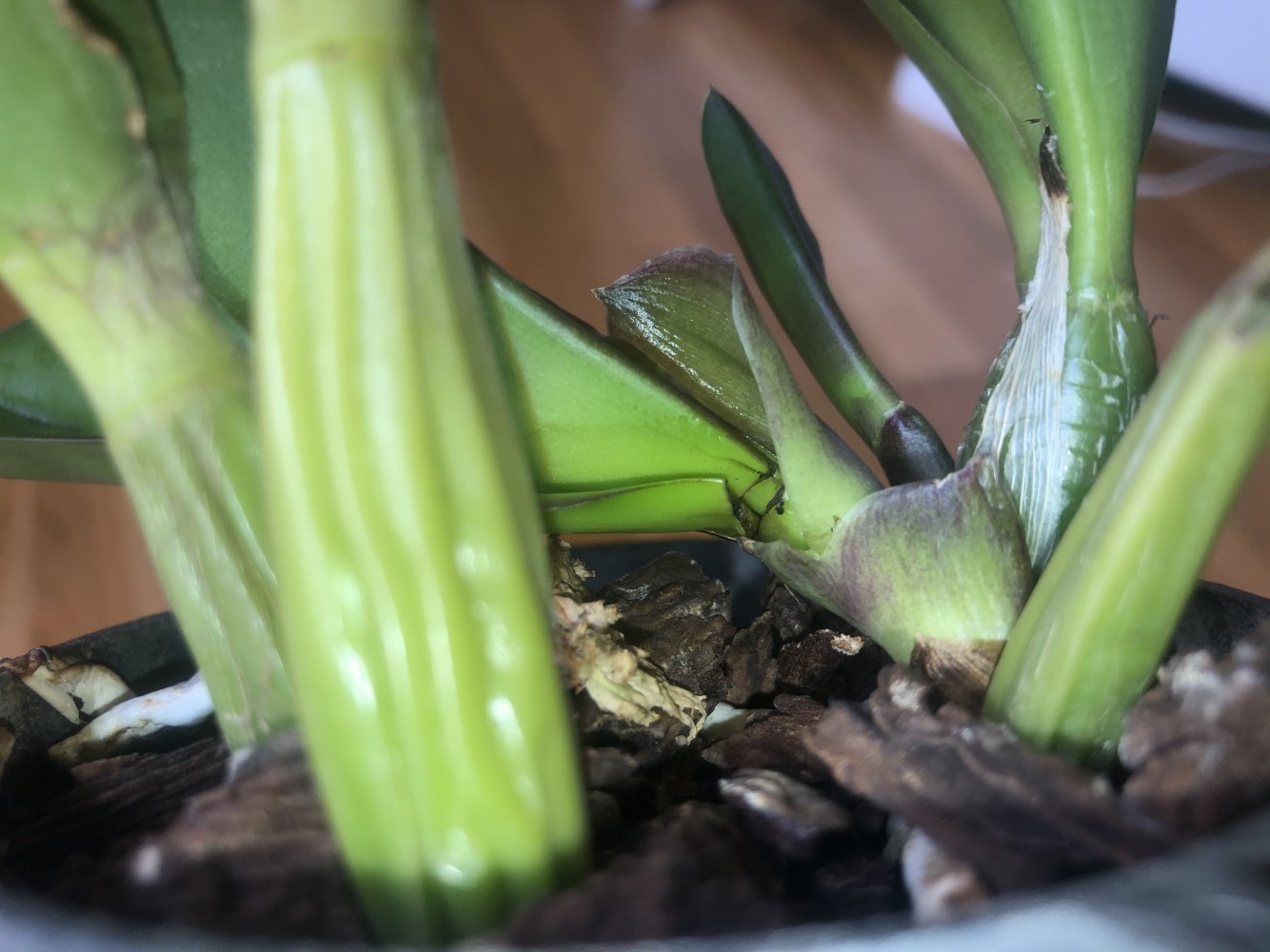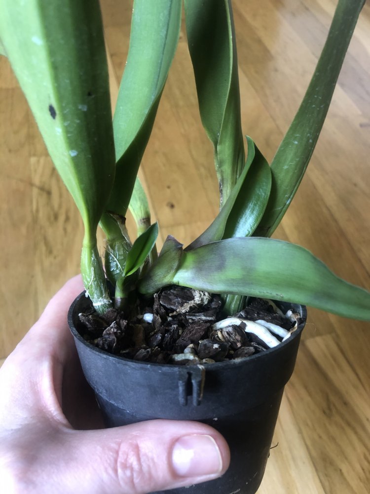В накладной А-19,подозреваю,что это Lc.Chian-Tzy Ostelove 'CT-Little love'.Отзыв с фото есть.Ничего с ней не делала.Сразу пошли два новых роста.,растут корни.Но росты как-то в сторону смотрят,незнаю почему,впервые такое вижу.Растение крепкое,без жителей
