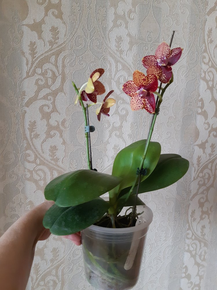Растение прекрасно. Толстые живые корни, чистые листья, два цветоноса. Цветки крупные 6-7 см, только распаковала - сразу почувствовала сильный аромат, правда немного помялись.