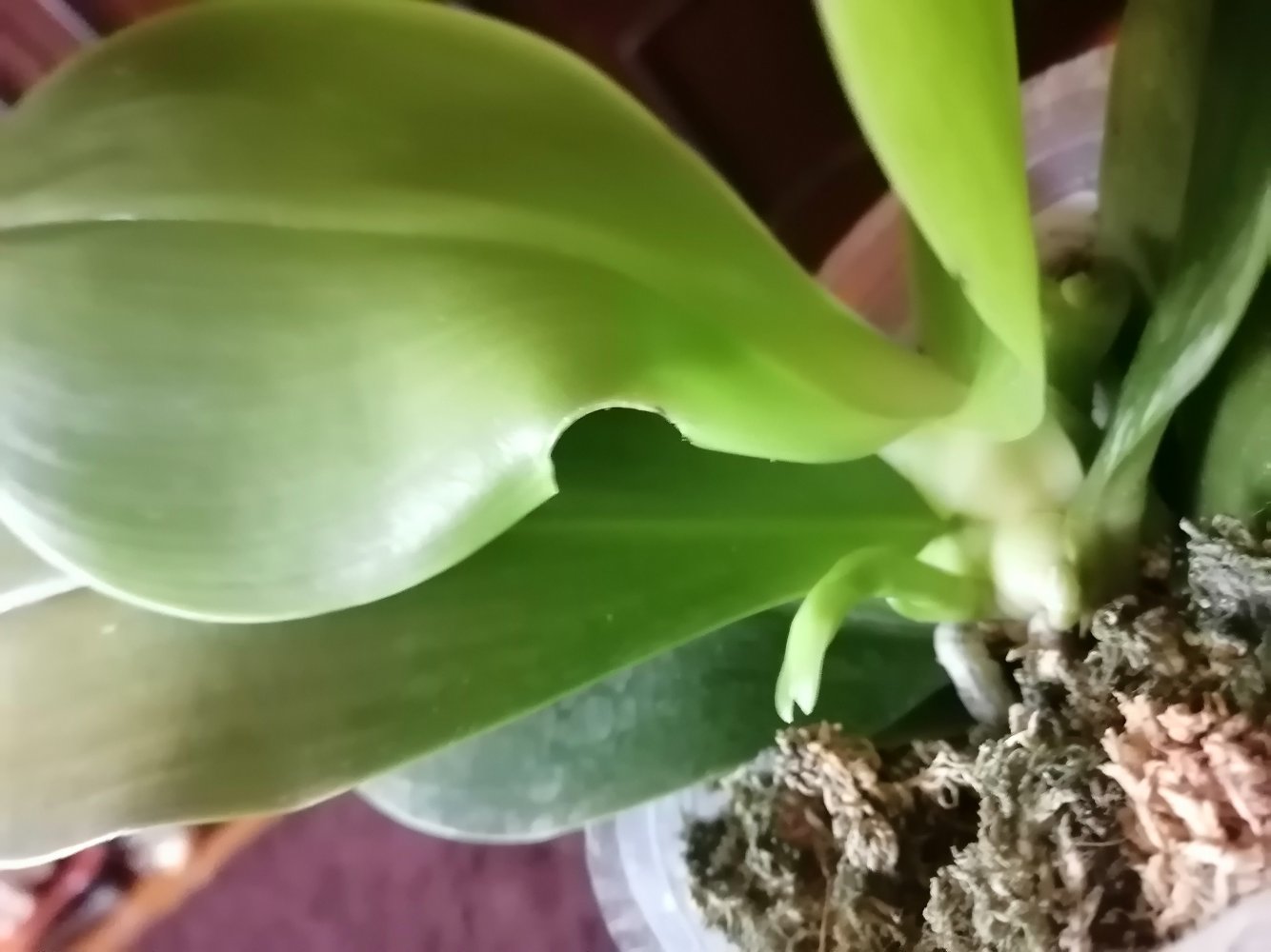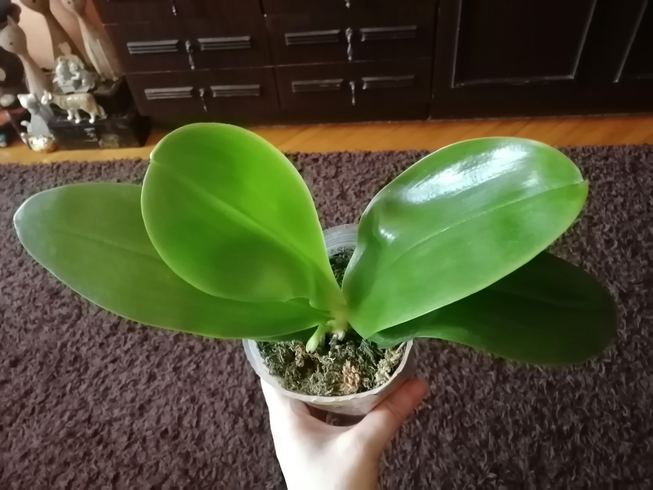 Листья просто восторг! корешков у стенок пока не видно, но тургор отличный, листья великолепны!