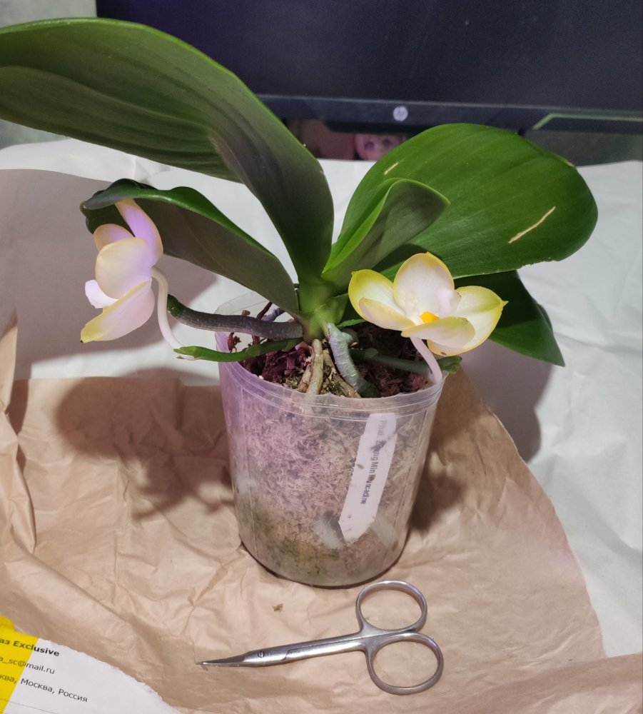 Заказ 186672 одно растение phal. Zheng Min Muscadin "alba". Первый день получения.