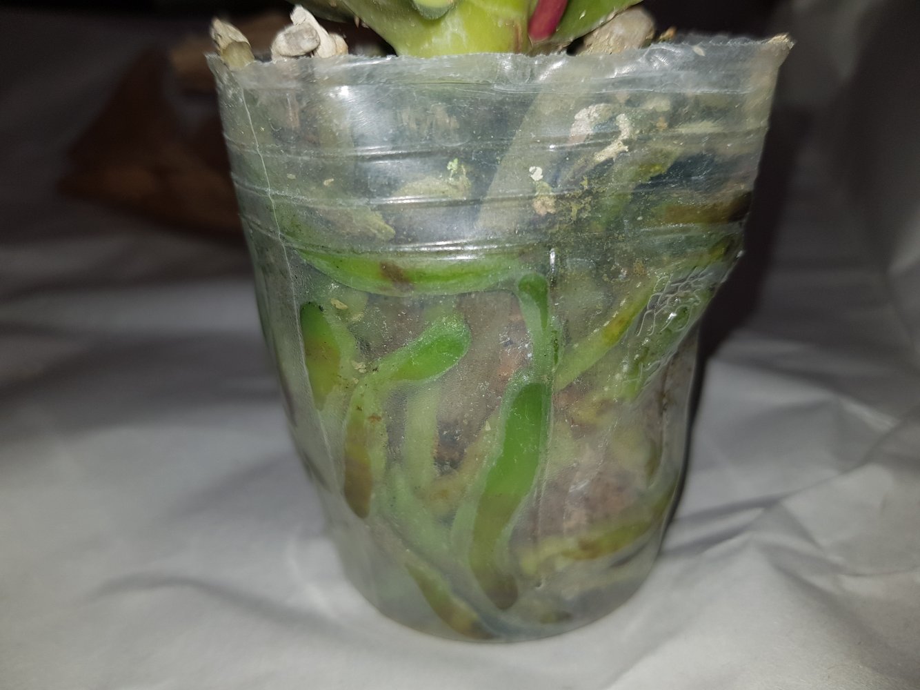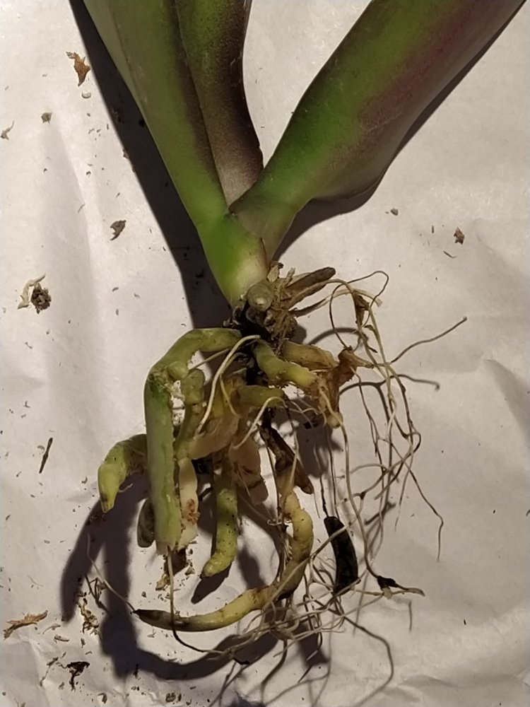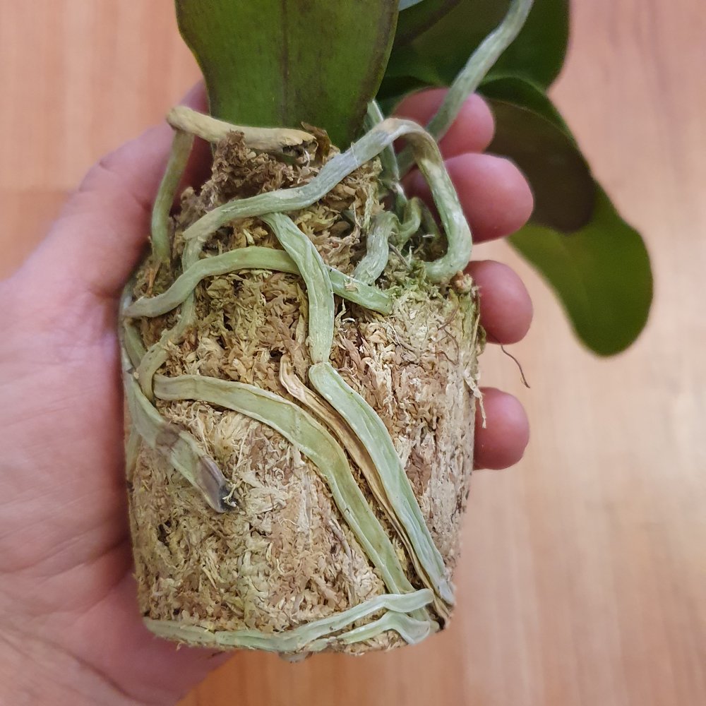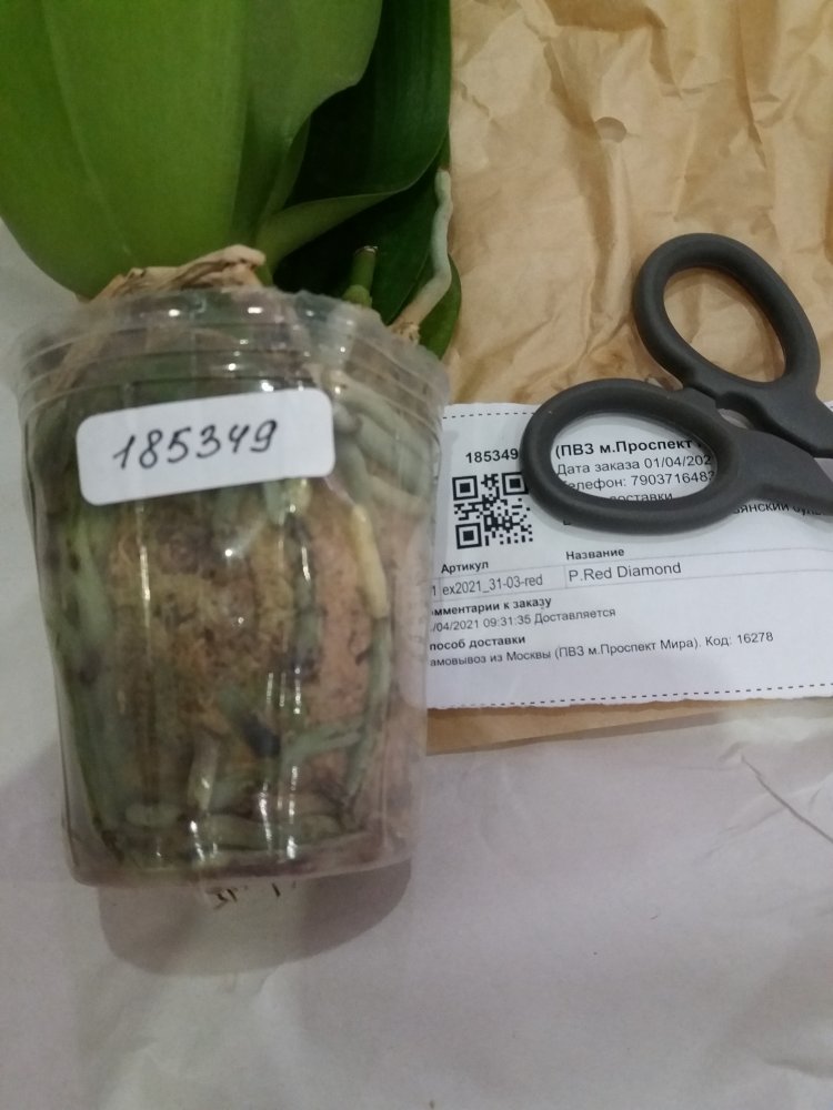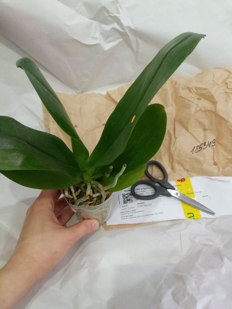 P. Red Diamond. Получен в день смс из ПВЗ. Растение взрослое, крупное, великолепное. Просушено хорошо. Черные участки на корешках. Срезанный цветонос. Это восторг просто! Всем причастным спасибо!