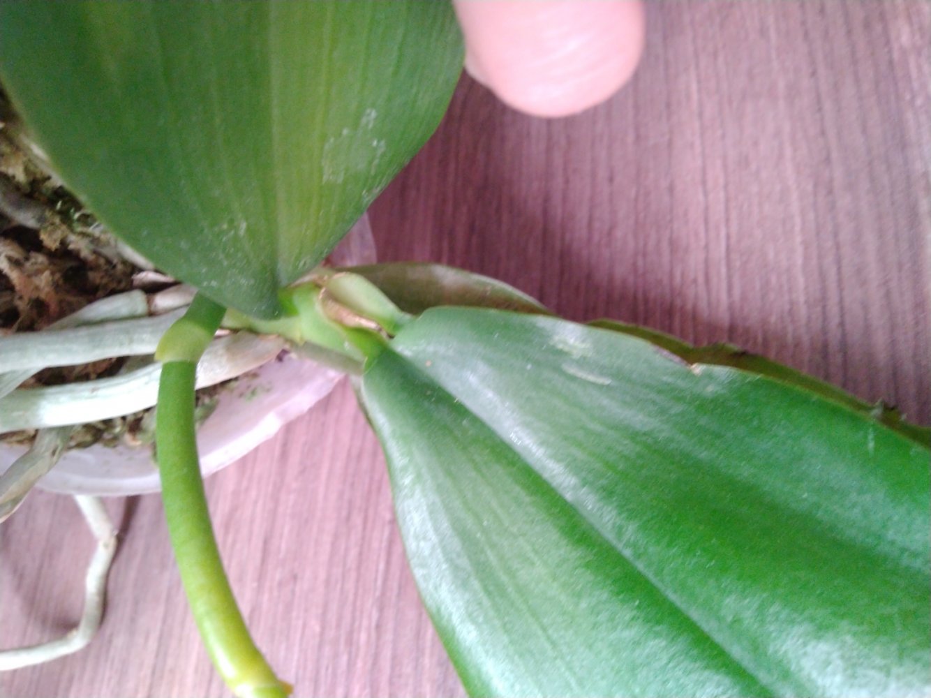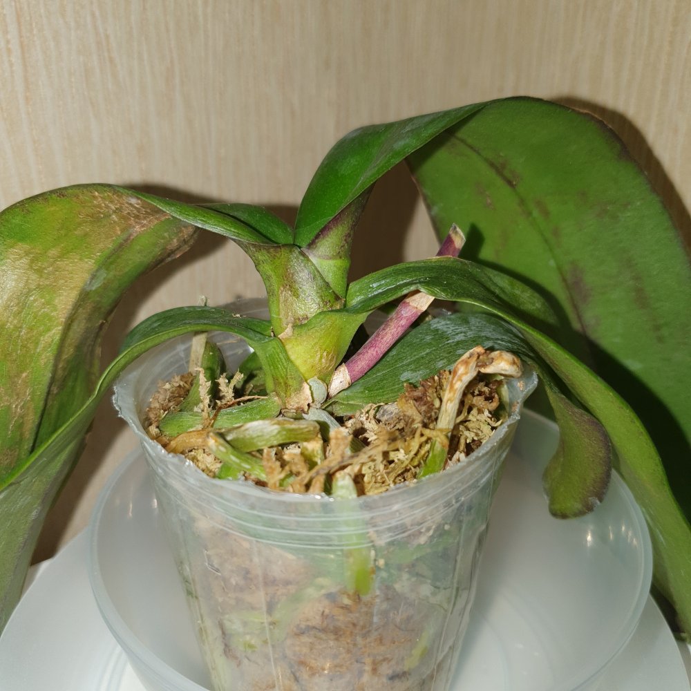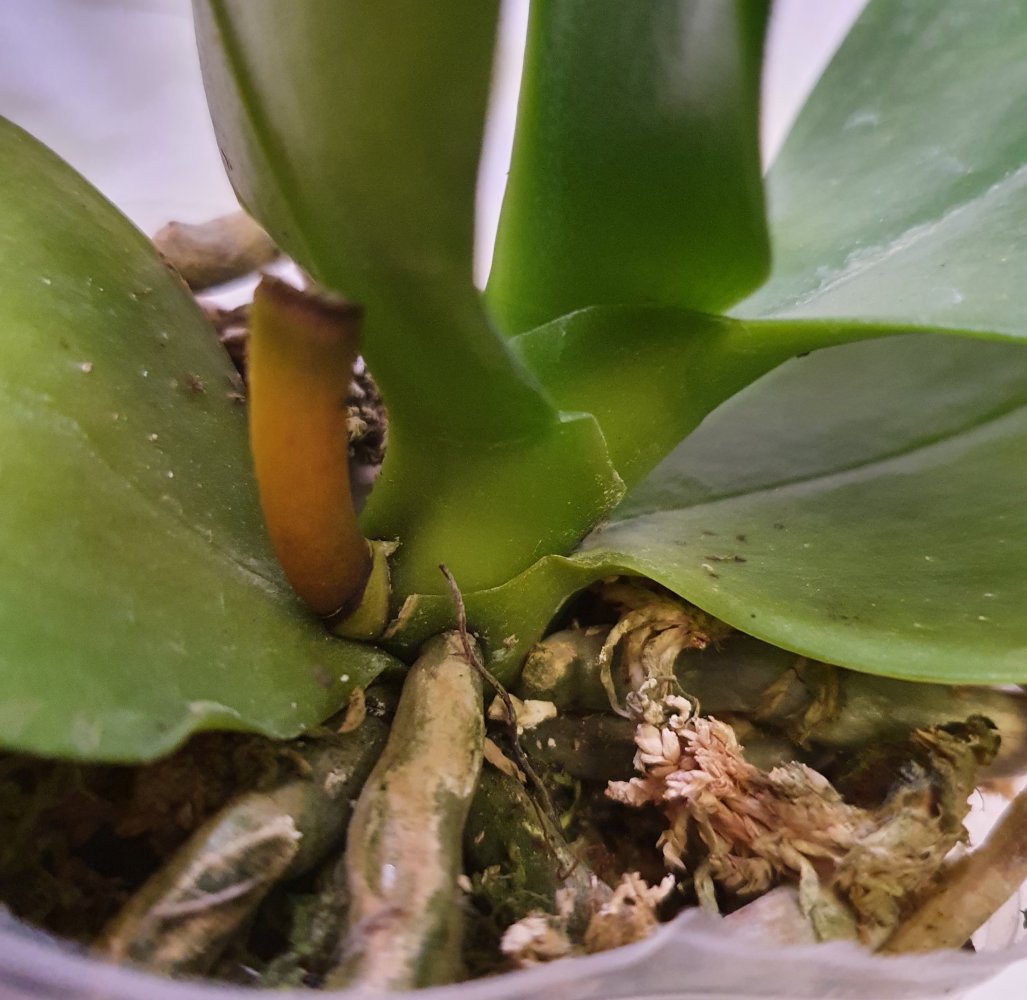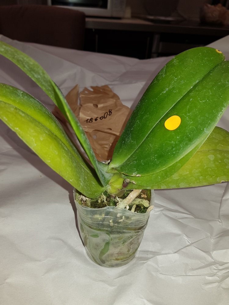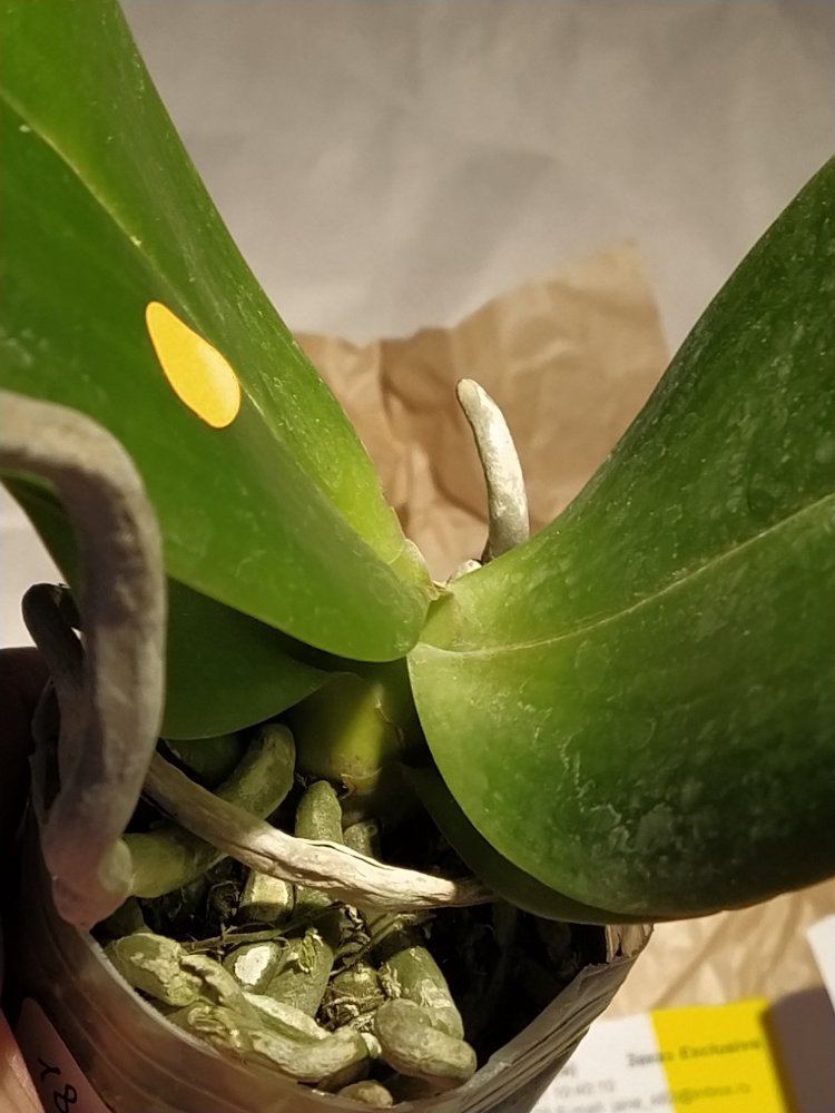 вот тут немного черноты на попе, в остальном растение прекрасно! я бы не заморачивалась, но у меня 1 уже так ушел, гниль с попы. Видимо сорт плохо переносит дорогу. Пока опасений не вызывает, буду наблюдать. Жалко, что цветонос отсушит, буду ждать новый.