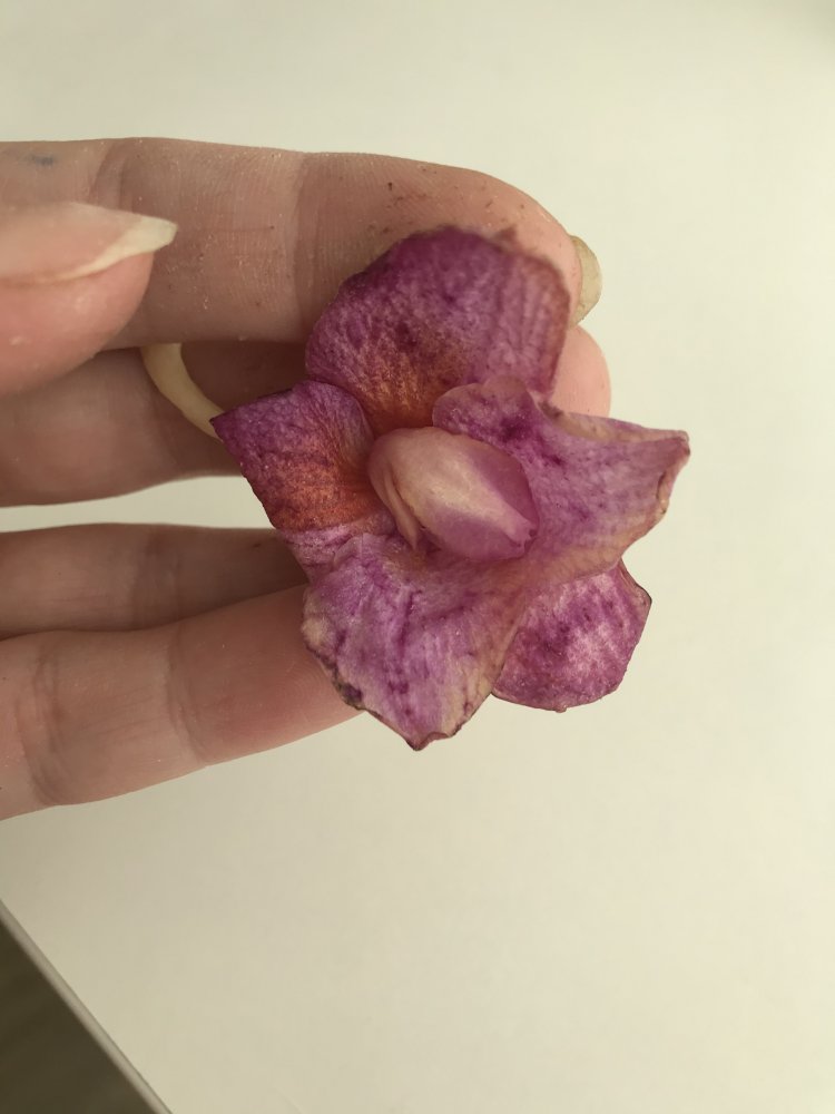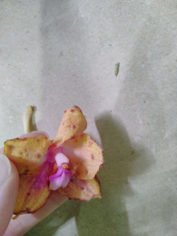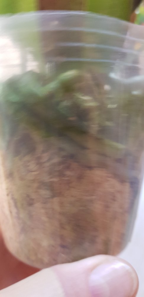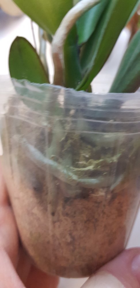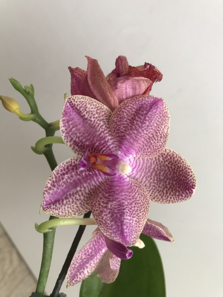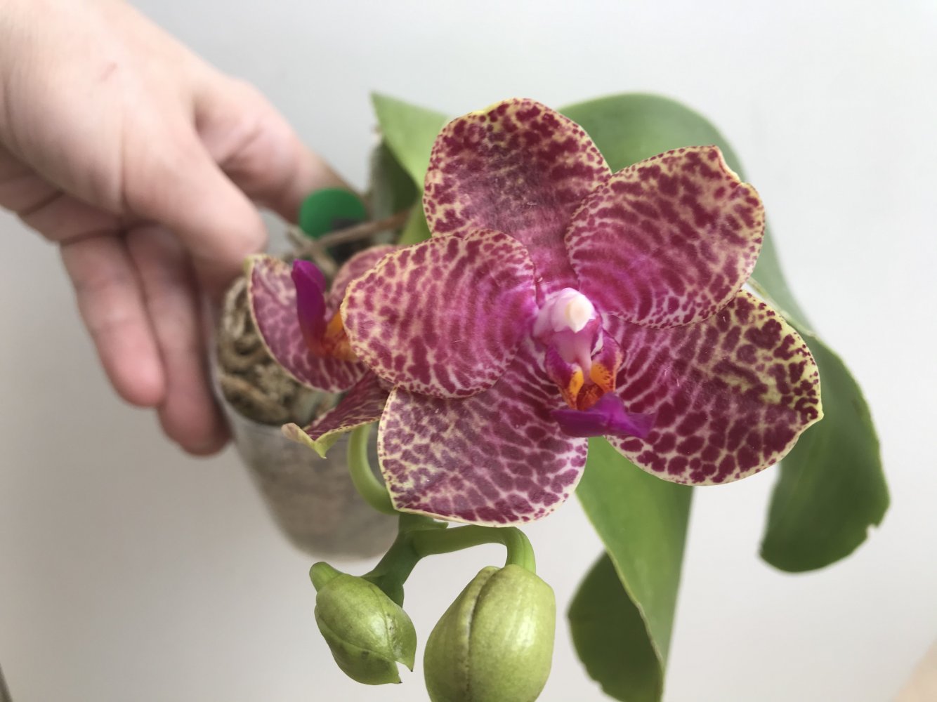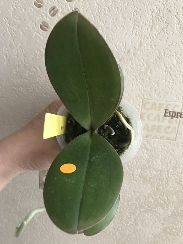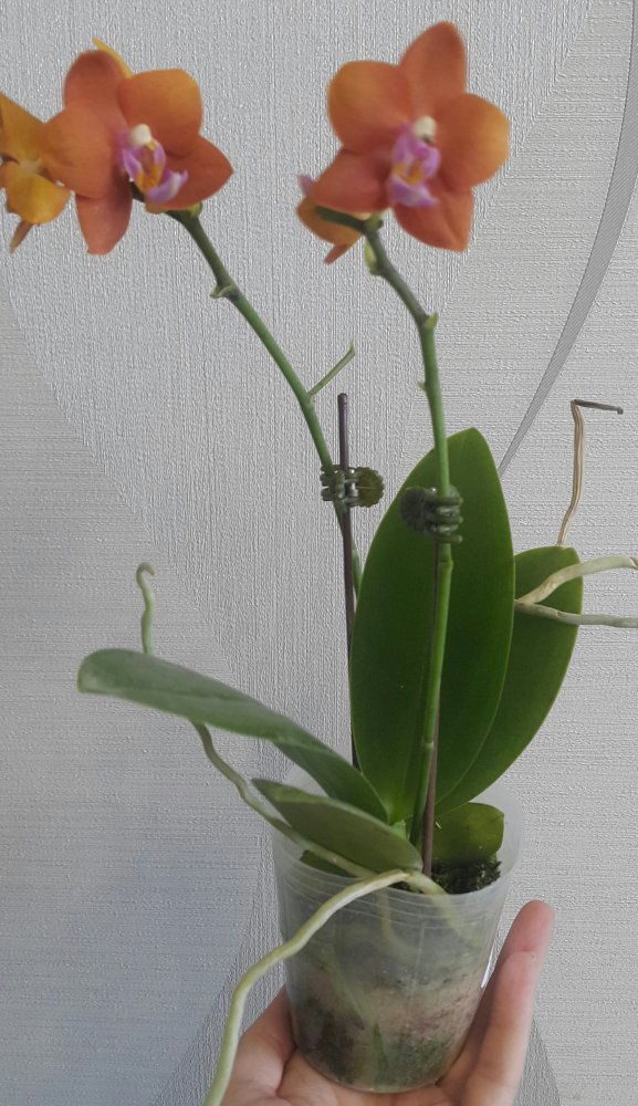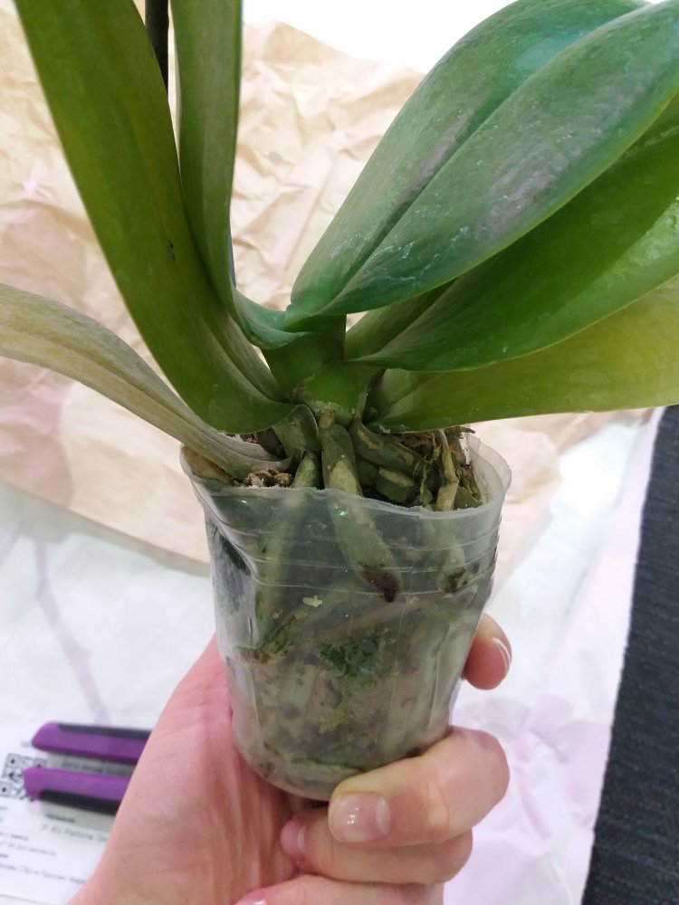 Отличный подросток,размер полноценный 2,5. Мох влажный, но ни корни, ни листья не пострадали, доехал в хорошем состоянии. Листья в тургоре, корешки живые, цветочки не все завяли) Цветочки размером 4,5 см,цвет в реальности обалденный, давно такой хотела! ❤️ Спасибо огромное за чудесное растение!!! И отдельное спасибо за возможность увидеть цветы, жаль что в первой поставке с охоты цветоносы были срезаны.