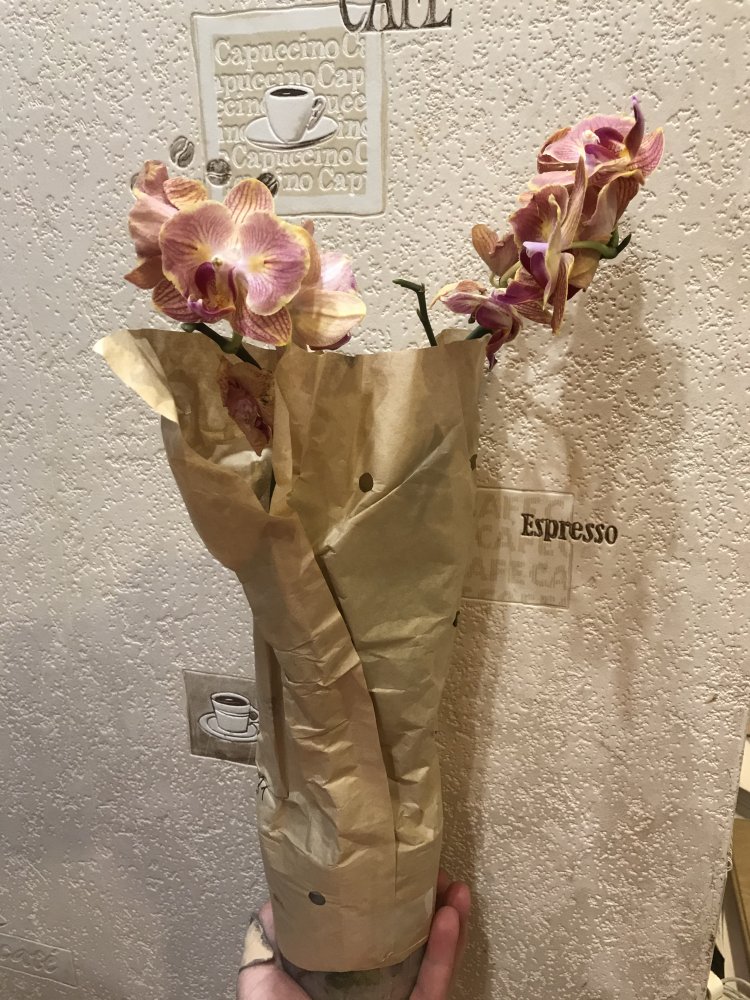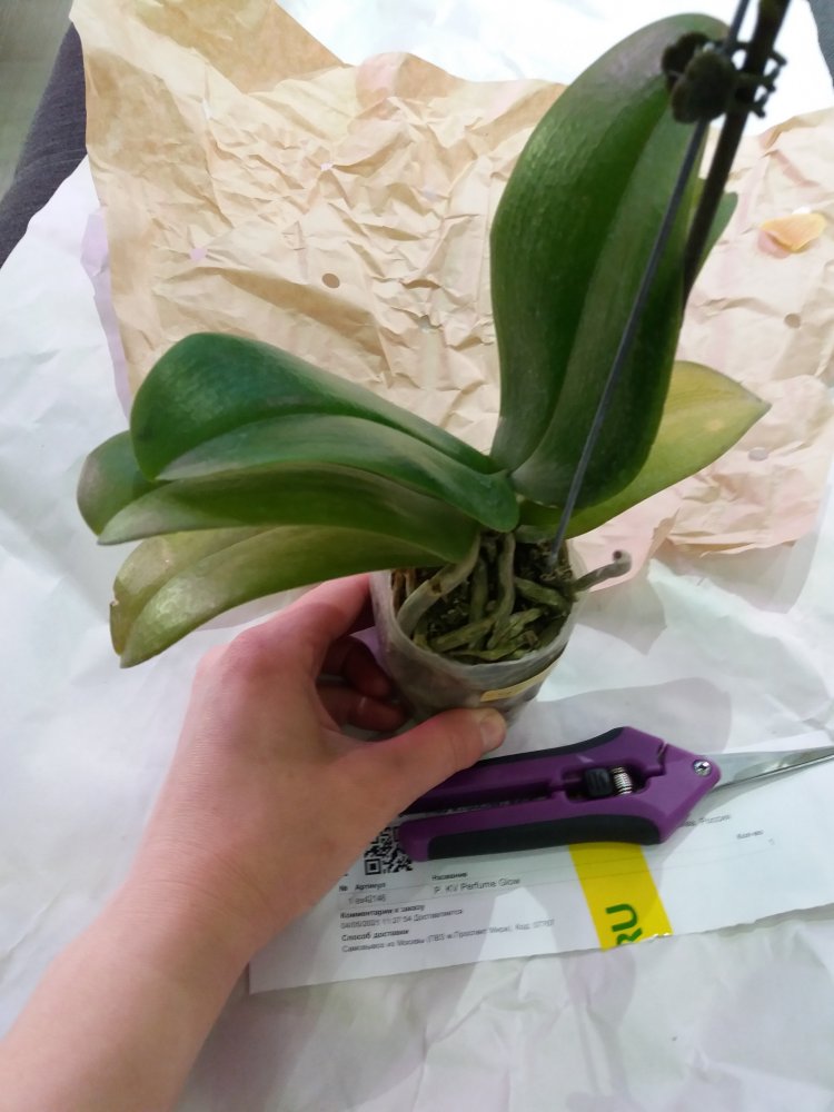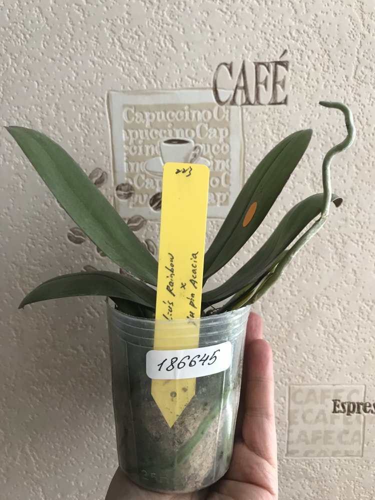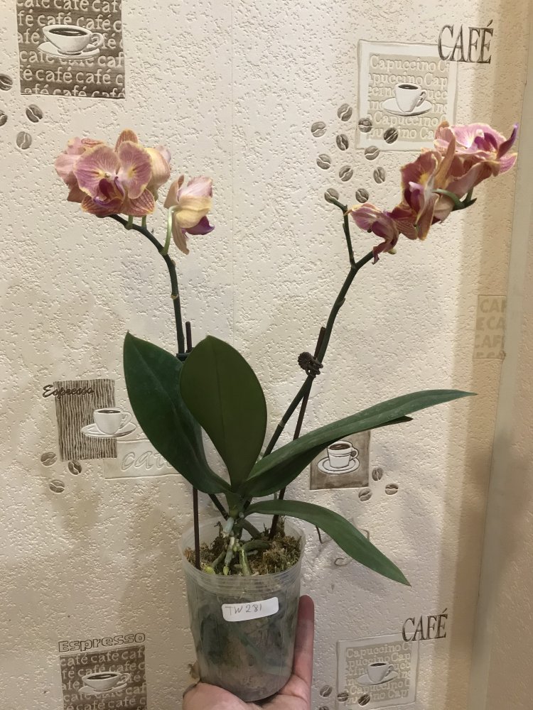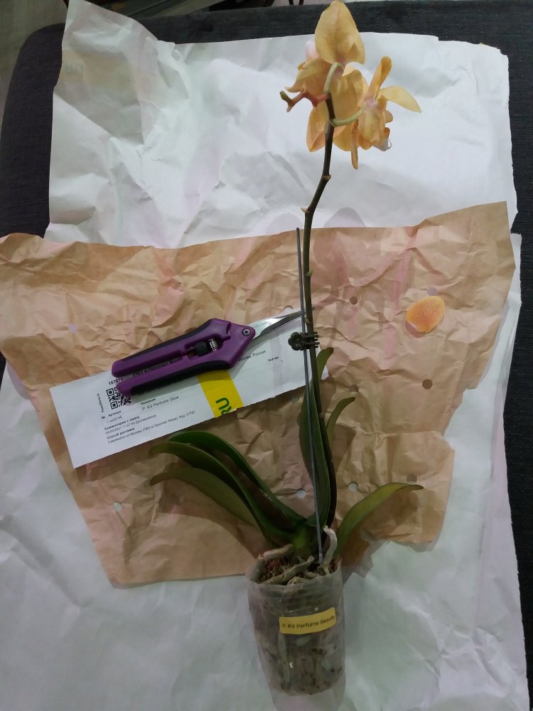 Заказ №186645 Москва. ПВЗ в день получения смс.Фаленопсис Р.223 Состояние цветочка замечательное, цветонос срезан, упаковка хорошая. Есть бирочка с названием родителей. Команда порадовала, спасибо!