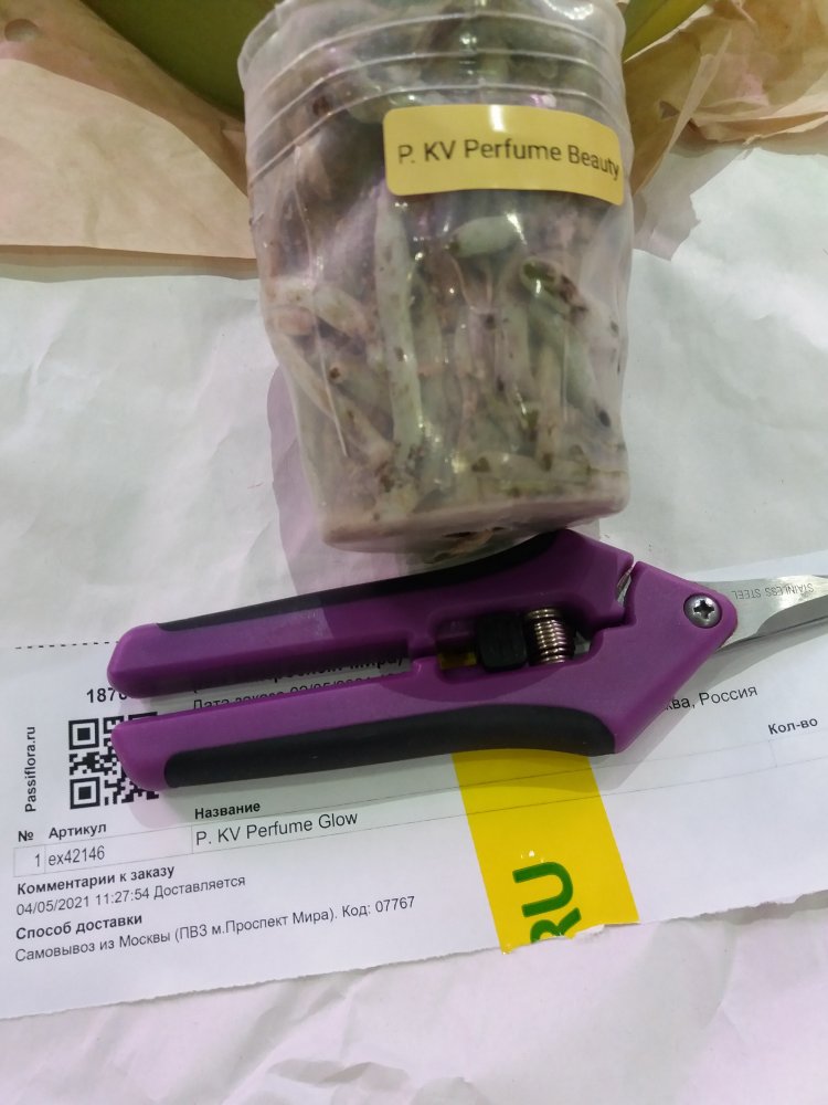 Заказ получен в день смс из ПВЗ в Москве. В пути 1 час. В заказе 1 растение по накладной P.Perfume Glow, по наклейке на горшочке P.Perfume Beauty. Посажено в горшочек 2,5, но давно выросло из него, корни распирают. Мох просушен. На поверхности паутинка, хозяина не нашла. Розетка листьев компактная, с желтоватым оттенком, нижний листик начинает желтеть. Есть цветонос, но в пути начал желтеть, 3 цветочка, точно соответствует промофото, без аромата. В пазухе виден кончик 2 цветоноса. Мох просушен, растение тургор не потеряло. Очень удачный экземпляр. Всем спасибо!
