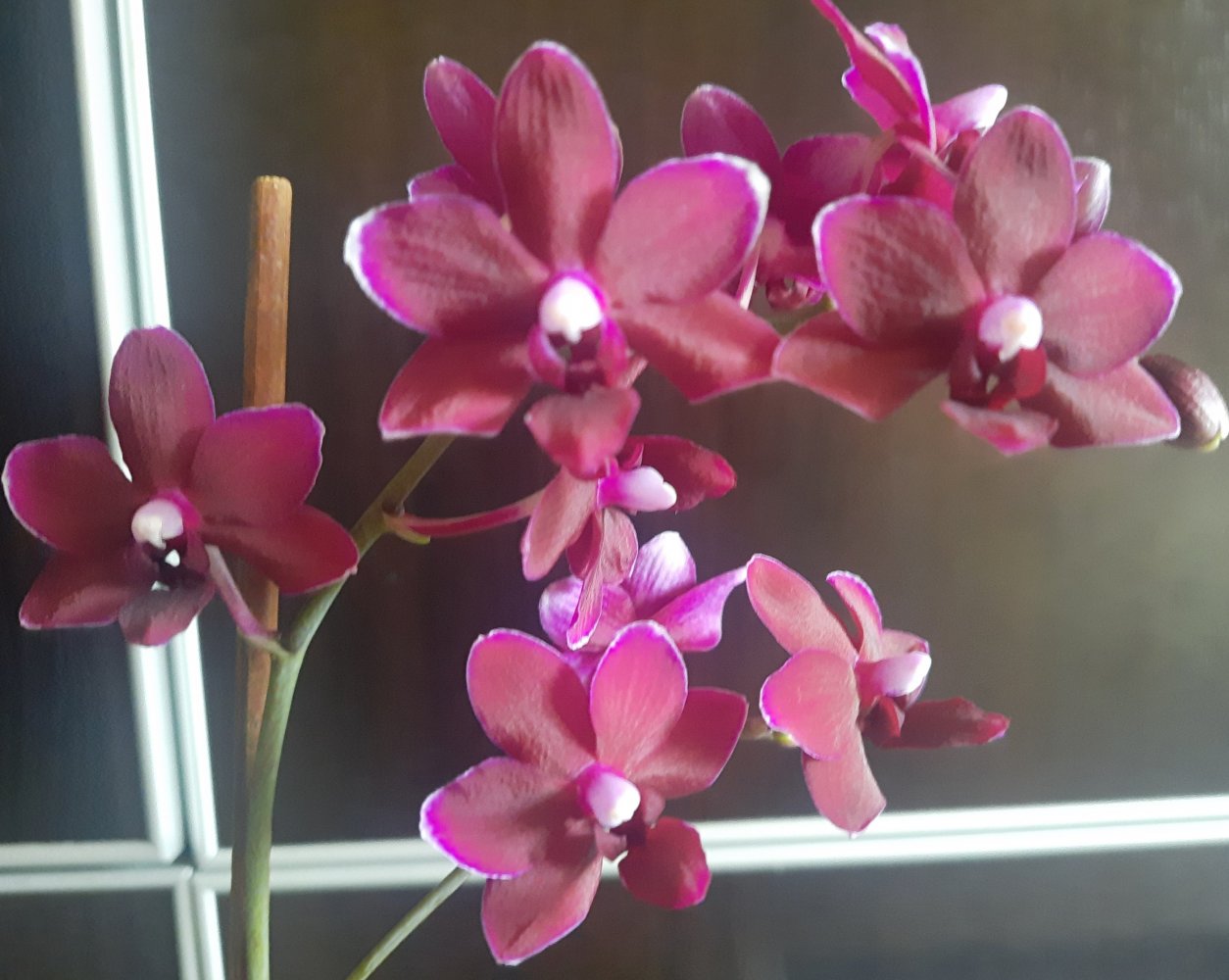 Эта нежная красотка цвела у меня несколько раз. И всегда на цветоносе не более 3 -4 цветочков. Форма всегда постоянная, а вот расцветка со временем менятся