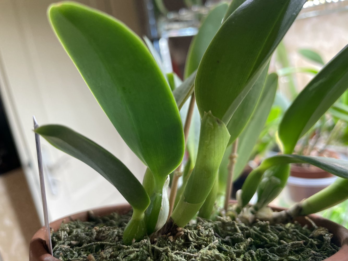 Если условия роста будут хорошими для этой каттлеи - а это тепло (25-30С) хорошая влажность и ! важно - хорошее движение воздуха то каттлея выдаст второй рост который закончится в августе. Как большинство каттлей лучше всего Cattleya schroederae растет при температурах 38-30С с большим количеством солнечного света и хорошим движением воздуха.