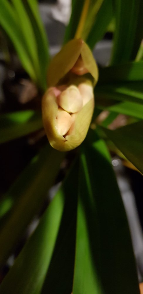 Цветонос вырос еще чуть-чуть и стал пытаться раскрываться, но не тут то было. Покрывало не хотело его выпускать, как бы говоря .. " Да рано еще, да холодно вокруг, да мокро вокруг"....