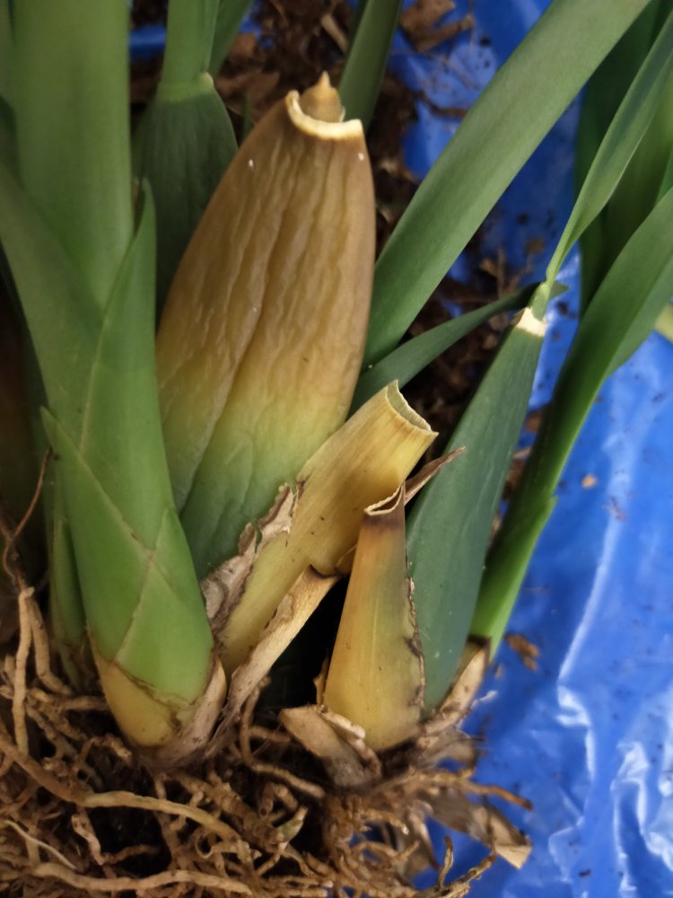 Ох уж эти стаканчики под попой... Удаляйте его. Жёлтые чешуйки у бульб тоже можно аккуратно снять. Корни в верхней части видятся по большей части живыми, в нижней не очень. Проведите по корням пальцами, с погибших снимется верхний слой (веламен). Такие корни удалите. Засохшие тоже. И посадите в свежий субстрат. Наблюдайте дальше. Превентивно можно обработать против грибка и гнилей-Серебромедин или Фитолавин. Самые простые препараты. Если под рукой есть Фитоспорин, можно и им. Он слабенький конечно, но пользу тоже приносит. Перед посадкой в новый субстрат подержите корневую в воде с одним из указанных препаратов минут 10. Субстрат не поливайте. Само растение полить можно дней через 5 при условии замачивания корневой. Если без замачивания, то через 2-3 дня с одним из указанных препаратов.