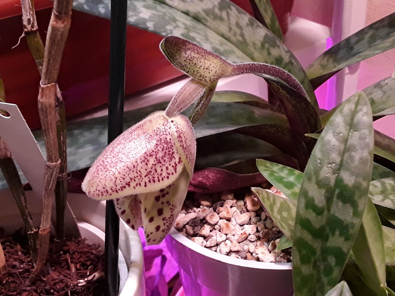 Как раз белатуллум от Швертера, который у меня с 2015 года живет, скоро распустится)). Очень его люблю, самый красивый вариант цветения этого видового башмачка - огромный цветок идеальной формы и яркого конрастного окраса)). Растет уже давно в горшке 12 см - все в корнях. Грунт на основе камней известняка и крупной коры, сверху лечузой присыпала. С учетом, что белатуллум крайне чувствителен к субстрату, из за чего советуют его ежегодно пересаживать в новый, такой субстрат позволяет избежать ежегодной пересадки. Если субстрат ему не подходит, этот башмачек просто пересатает расти, а уж цветения вообще не дождаться тогда. Поэтому если беллатулум годами сидит и ни гугу - ищите ответ в его горшке)).