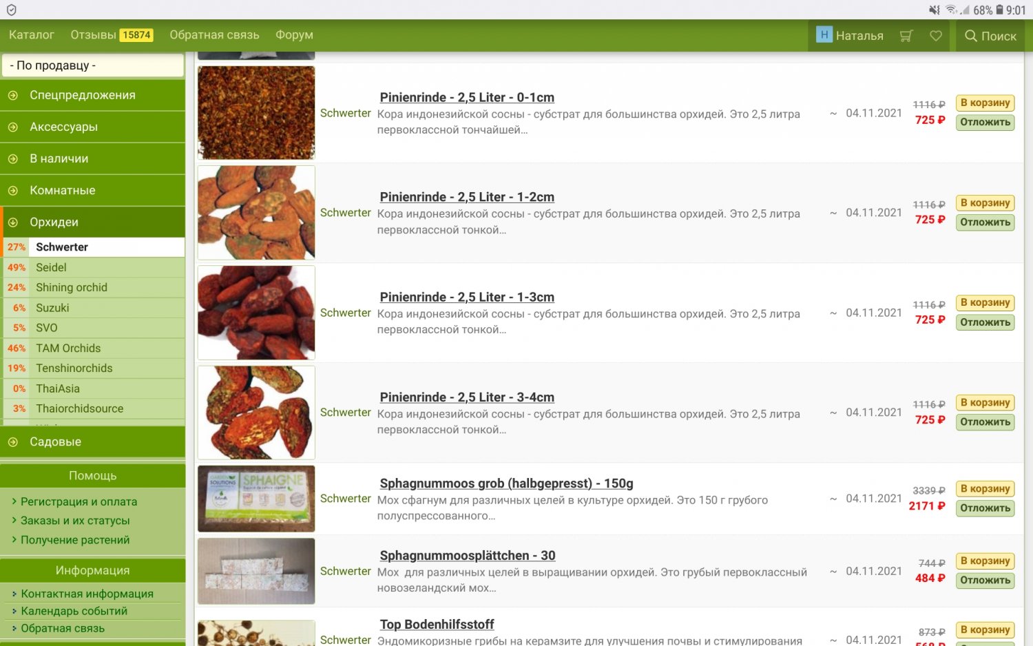 Тут все о растениях, а я до сих пор под впечатлением от субстратов от Швертера. Кора в пакетах по 2,5 л настолько хороша... не смотря на кусачую цену, упаковка большая получается. И кора вся чистая, без примесей, уйдет все под подсадку 100%. Только фракция чуть мельче, чем предполагала при заказе и привыкла к Орхиате, поэтому кто также привык к размерам Орхиаты, нужно брать следующий размер, чтобы была нужная фракция. Кора какой то другой сосны, не пинии и не нашей привычной. Ну и их фирменный составной субстрат необыкновенно хорош (можно его корой разбавлять, а то слишком "жирный" для орхидей). Вот такую кору получала.