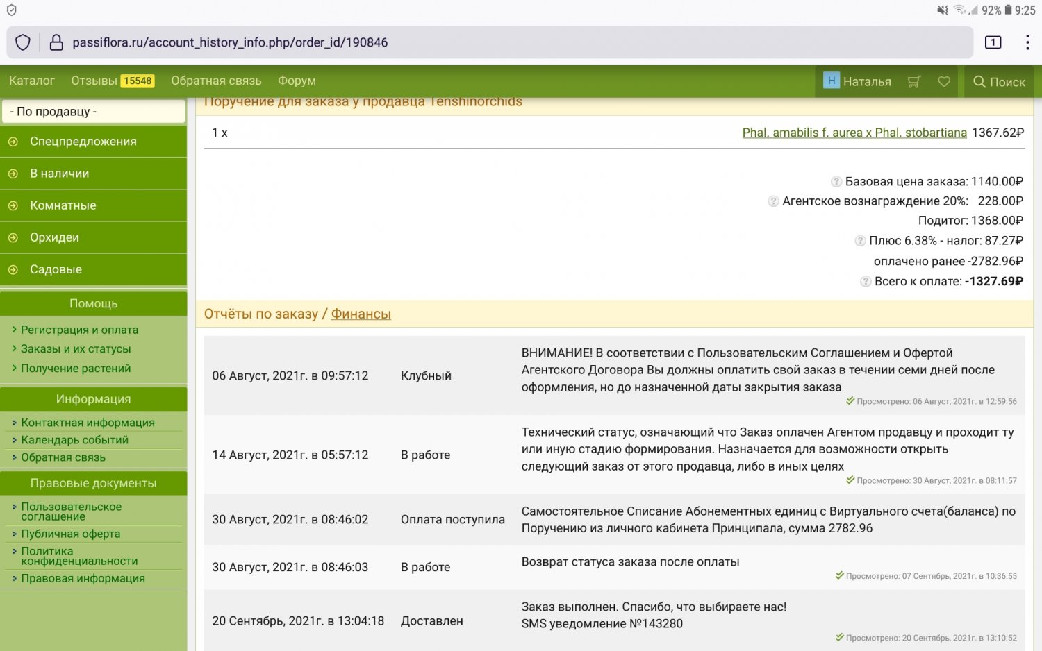 Продаю находящийся в ПВЗ заказ от Теншин (пришел вчера) - фаленопсис Phal. amabilis f. aurea x Phal. stobartiana по себестоимости - 1367 р поюс 80 р за оплату ПВЗ. Прилагаю копию скрина заказа и фото цветения из каталога. Забрать можно самостоятельно,номер заказа и код сообщу отдельно.