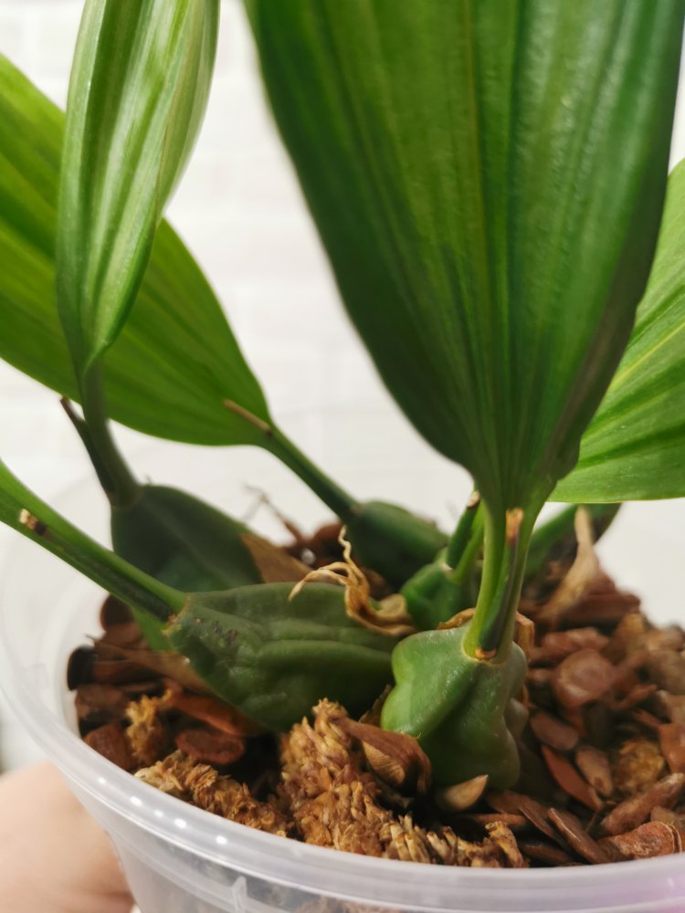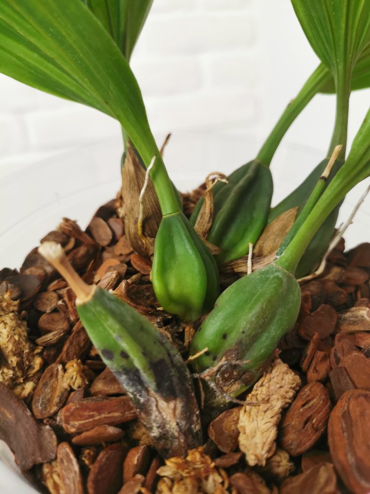 У цветов очень красивая бархатная черная губа. Молодые росты тоже красивые, красноватые, позже зеленеют.