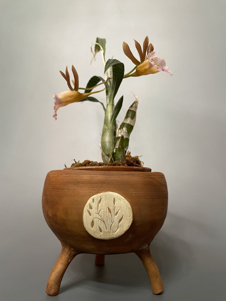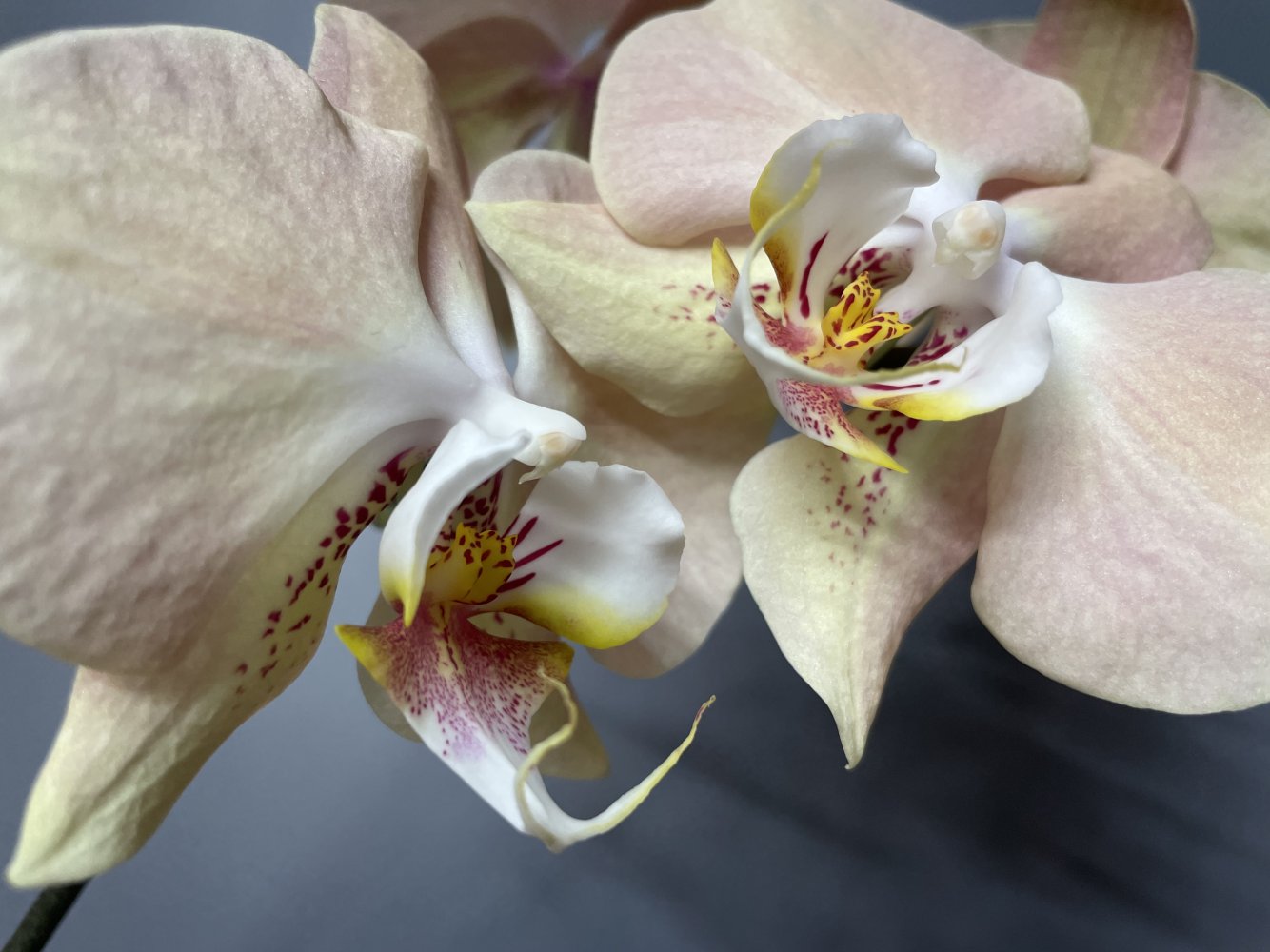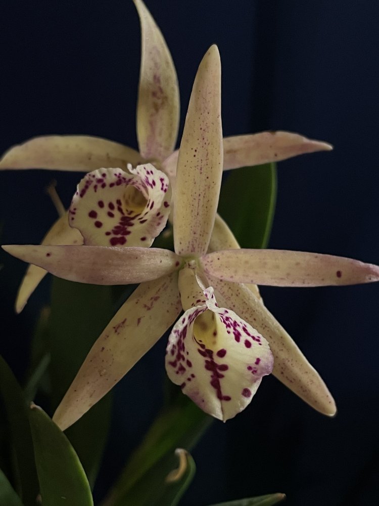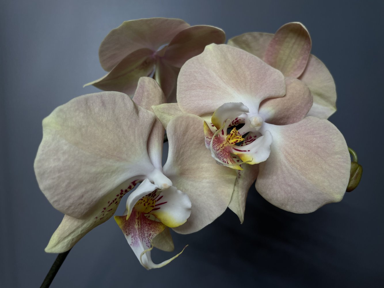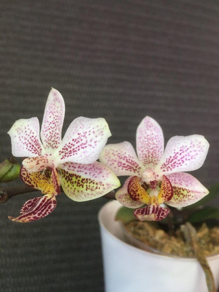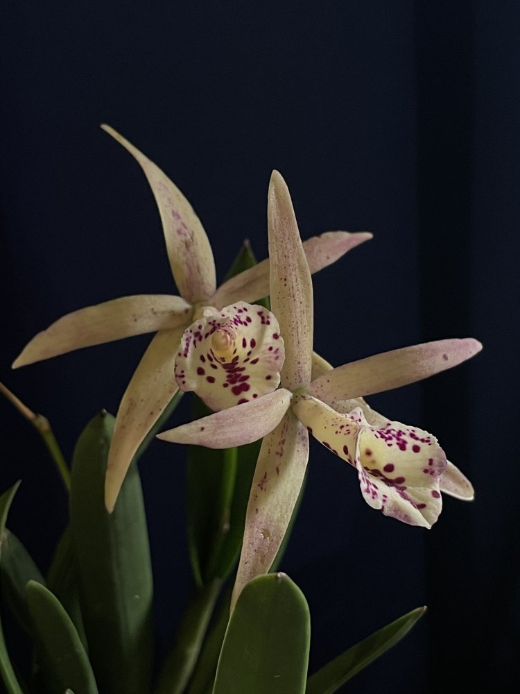 Немного истории: 7 лет назад увидела объявление о продаже 4-х летнего дендробиума Amabile. На фото был жирный в 4 крупных роста красавец с огромными около 10см тёмно-зелеными листьями. Посмотрев как он должен цвести, сразу поняла-мой))) Прежняя хозяйка сказала, что привезла его 4 года назад из Вьетнама, что растение крупное, цвести не хочет и, наверное, ему у неё плохо и пора найти новое место (жалко растень). Прибыл он ко мне в горшочке 2,5” в камнях для устойчивости, учитывая высоту ростов в 40см! Был пересажен в 3”, спустя время в 6”. Прекрасно нарастил и наращивает корневую, гонит новые росты, крупнее прежних, НО, не цветёт. Я меняла место, увеличивала/уменьшала влажность и солнце – НЕ цветёт. Спустя 7 лет смирились, итак очень красивый и мощный. За 7 лет скинул всего 4 листа и 1 старейший рост. Я никак не могла успокоиться, что не так, почему не цветём??? Еды море, рост отличный, цветоносных спящих почек на каждом росте от 5 до 7 штук.