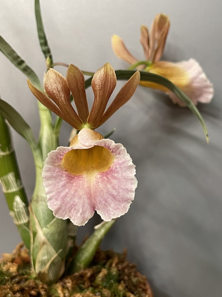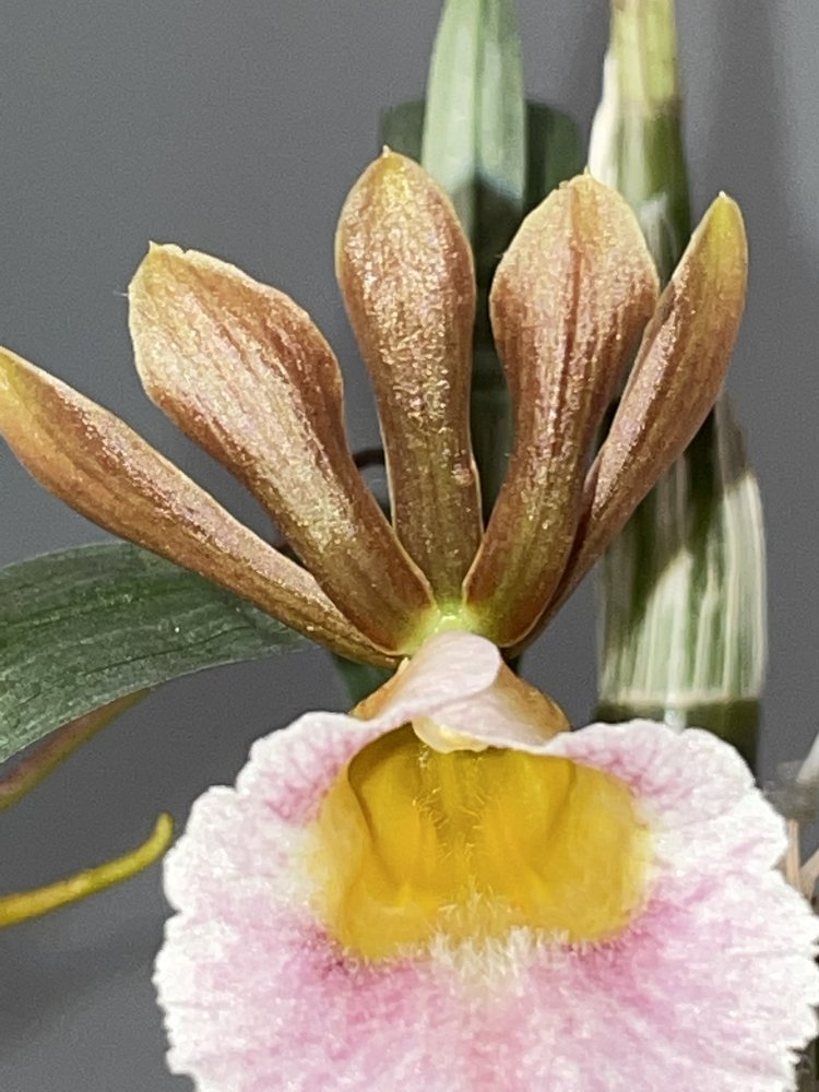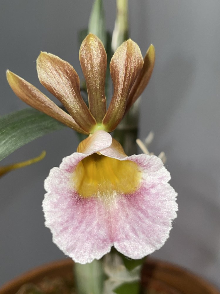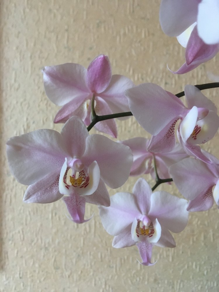 По мере роста «косы» обратила внимание, что цветонос не розовый, а бледно желтый, что бутоны не розоватые, а белые, что кисть сильно не вытягивается, а будущие цветочки густо сидят как кедровая шишка….