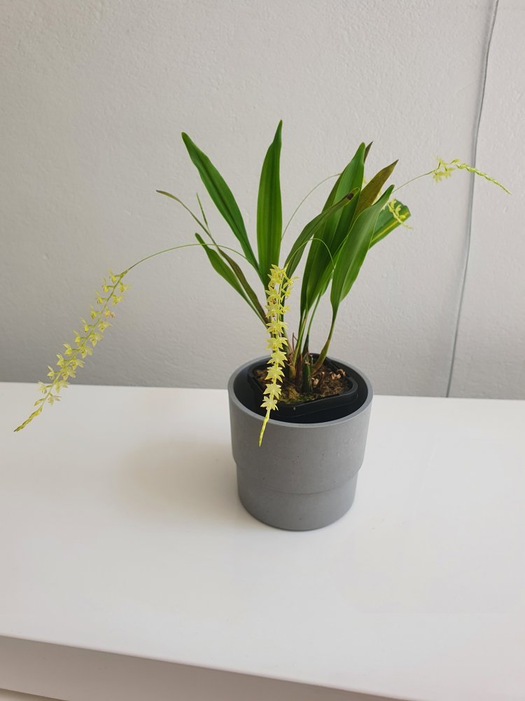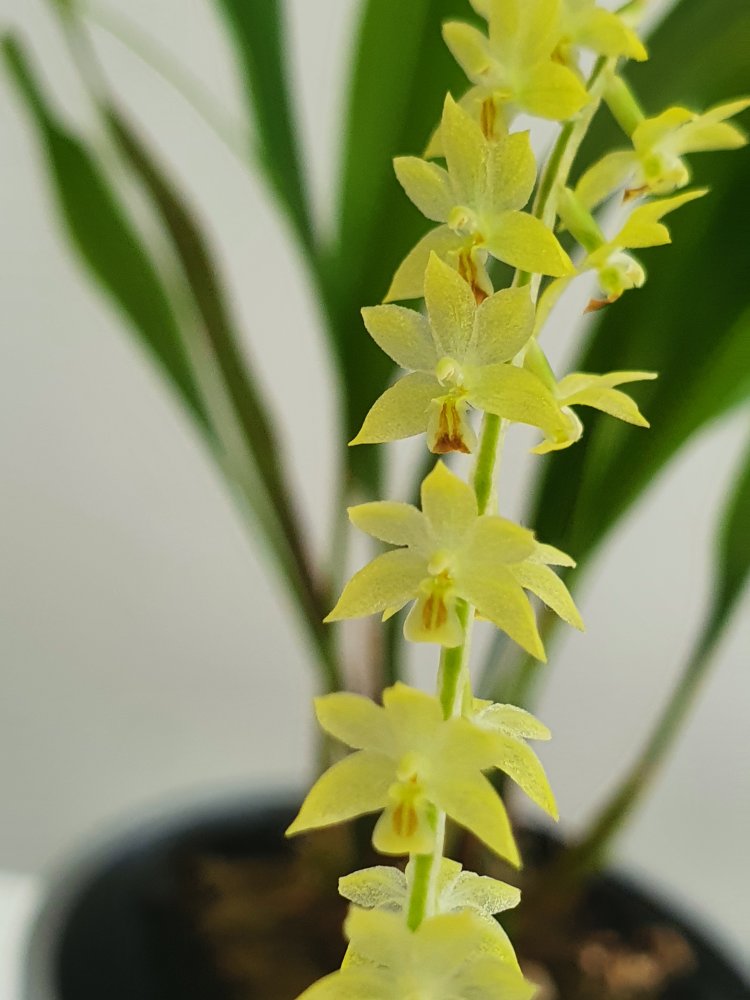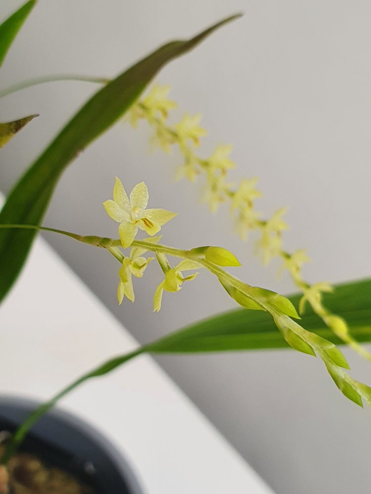 Dendrochilum uncatum. Этот в большинстве своём филиппинский род орхидей никогда не перестанет меня удивлять своим разнообразием. Как и в случае многих других дендрокайлумов, у этого тоже имеется приятный запах. Данный вид хорошо растёт в коре и даже мирится с кратковременными просушками (поливаю раз в неделю замачиванием на несколько минут, как и больнство других орхидей в коре), плюс растение очень компактное, это размер мини фаленопсисов.