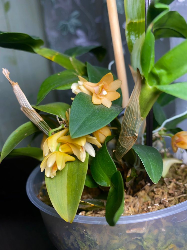 3 года ожидания и он расцвел! Den. Pittero Gold Diamond. Роскошный, яркий, крупный, лаковый! Сначала был чисто желтый и я решила, что пересорт. Но через несколько дней проявиламь белая оконтовка как и положено сорту. Цветки по 5 см, слабоароматные. В каталоге есть очень дорогой около 4 тыс руб, мне достался по спец предложению по хорошей цене в конце 2018 подростком. Тот случай, когда спец ну очень порадовал. Кстати, все мои дендры зацвели после хорошей декабрьской просушки, которая получилась случайно.