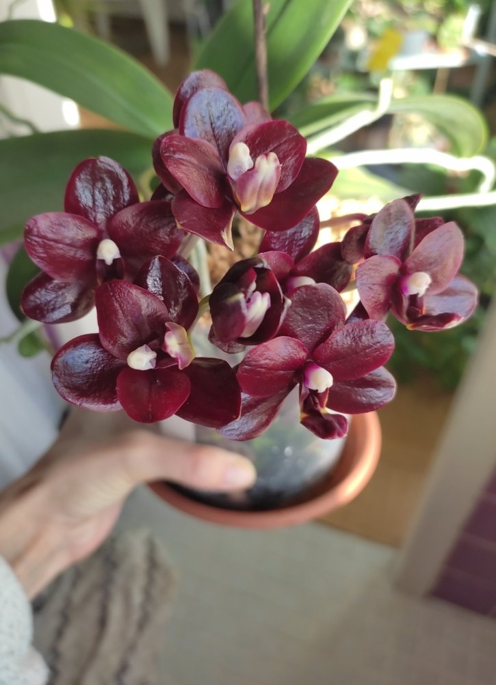 Хоть цвет тот, уже хорошо.Phal. Legato! ,заказ 30452, доставлен в дек 2019г, первое цветение, 2 цветочка, 8,5 см, аромата нет, сахаристый отблеск на лепестках, но почему то какие то рваненькие. Ну и не повезло, не пелорик)