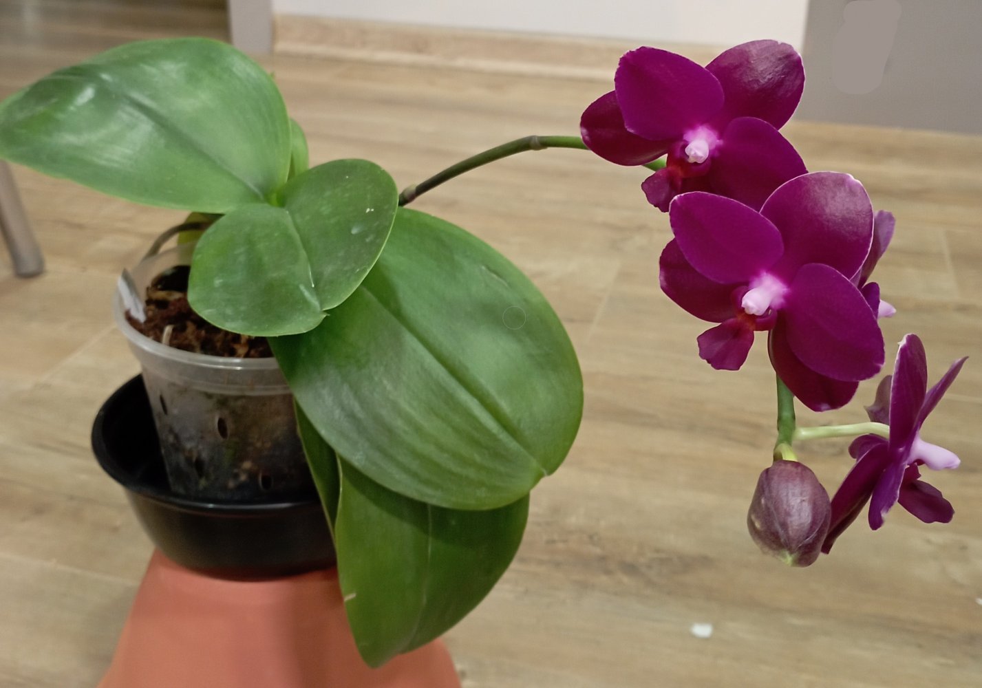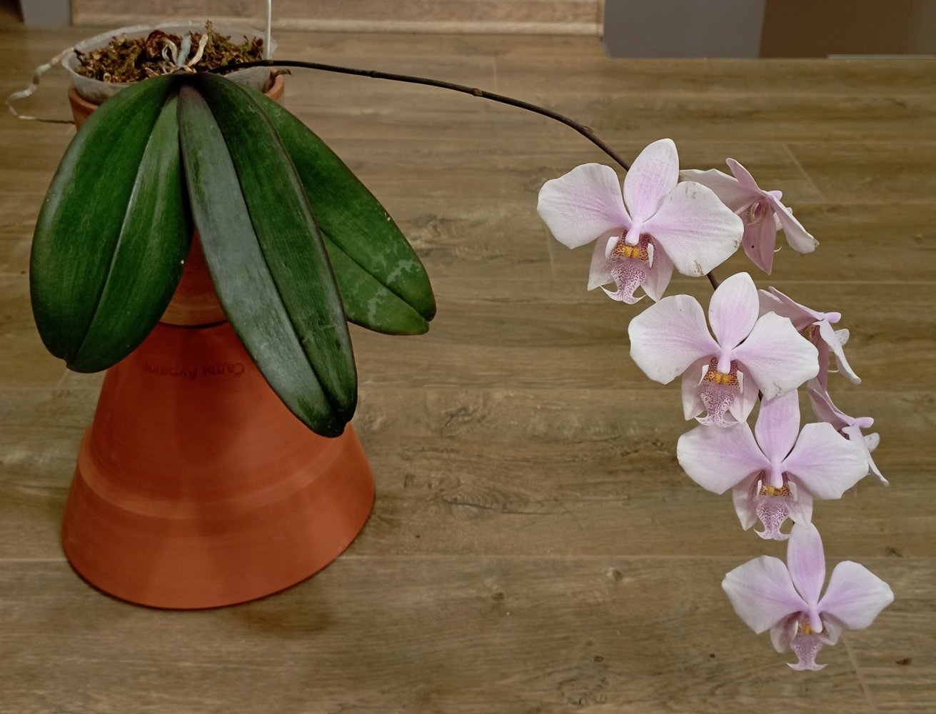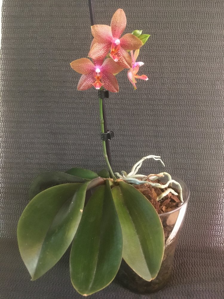 Специально ничего не делала,так как растение для меня новое совсем,и я просто наблюдала.То,что она зацвела с бульбы,выросшей у меня,действительно неожиданно.Так как она меньше,чем фермерская,я и не ждала.Она цветёт как Психопсис,доращивает цветонос.