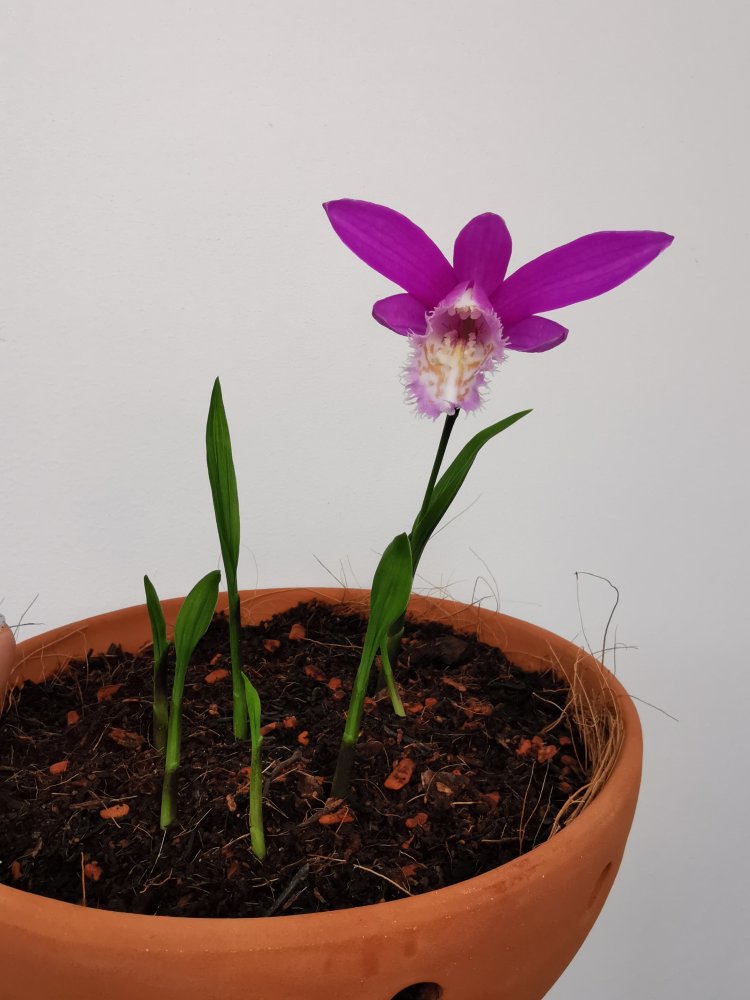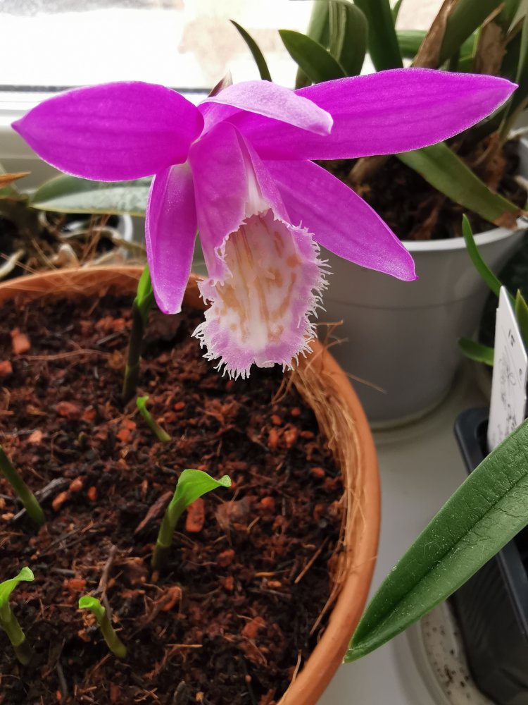 Pleione, подаренный мне год назад нашей форумчанкой, перезимовал в холодильнике, луковицы посажены, цветок в этом году один.