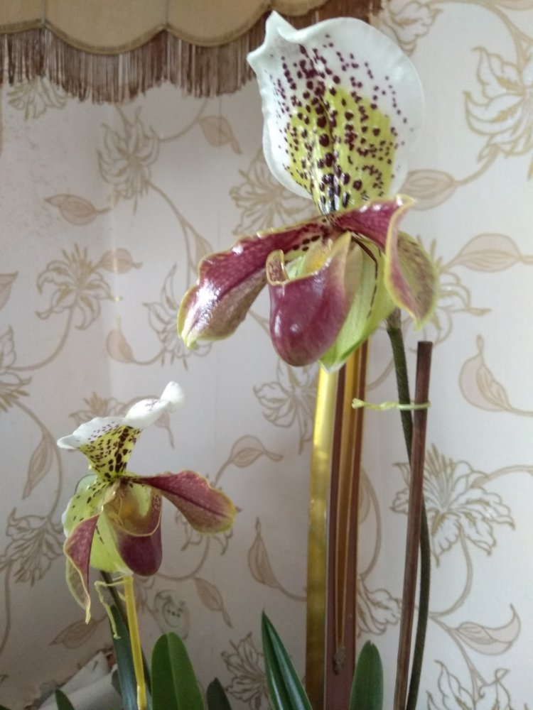 Два цветоноса, но вероятно один отцветет раньше, чем расцветет второйароматная, пахнет конфетками типа ирисок