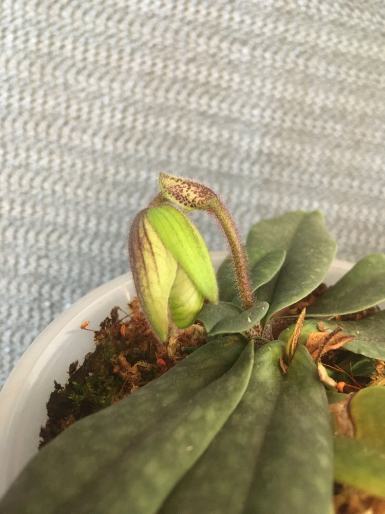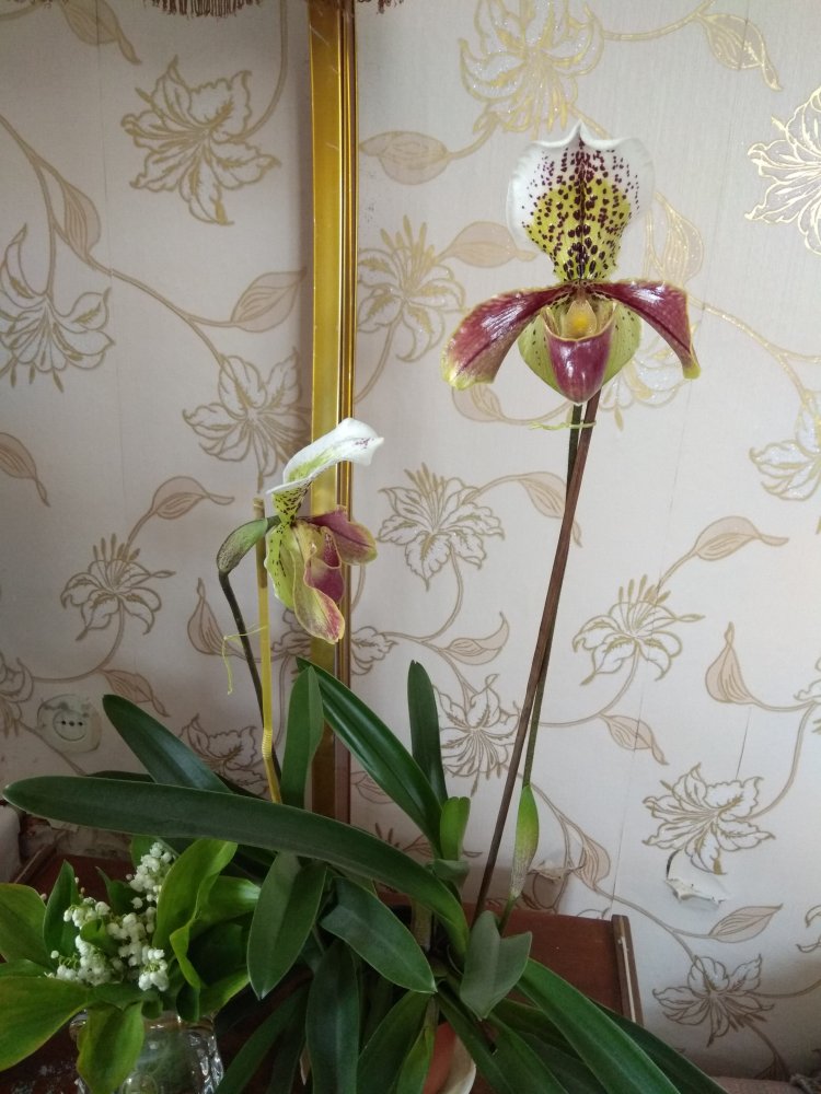 Цветения вообще не ждала ) видела новый рост с чехлом, а потом зеленый чехол лопнул и появилось два бутона