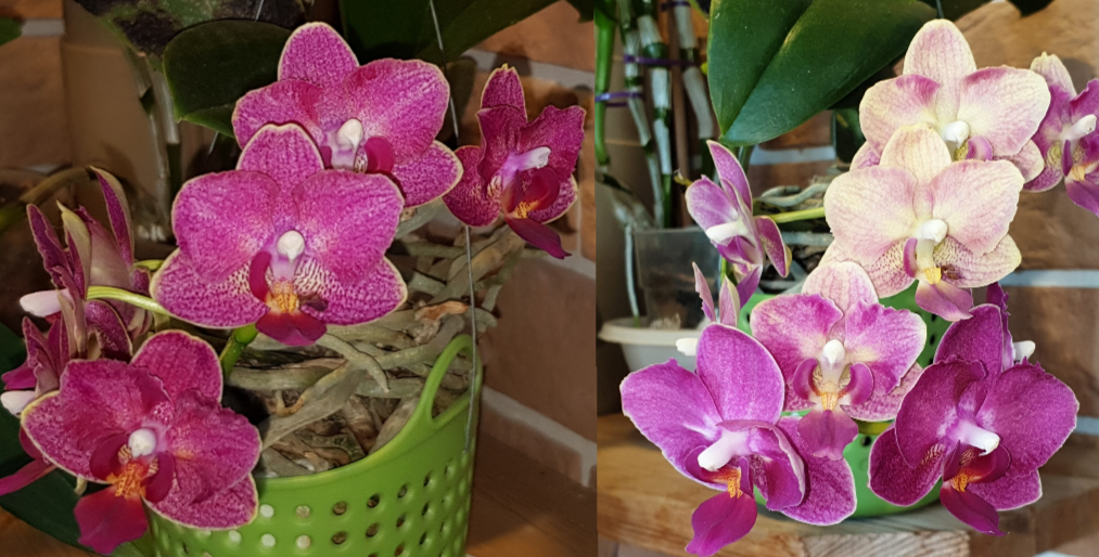 цветения в апреле 2020 г. я её пересадил в новый побольше. В прошлом году цветков не было, но зато в этом Colorization цвела сразу на двух цветоносах. Красивые цветки в неоновых цветах заявляли о себе душистым и пахучим ароматом.