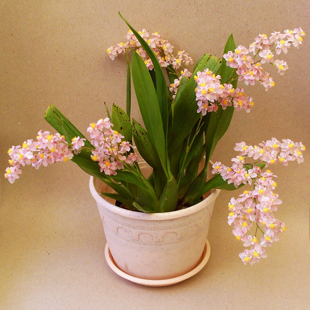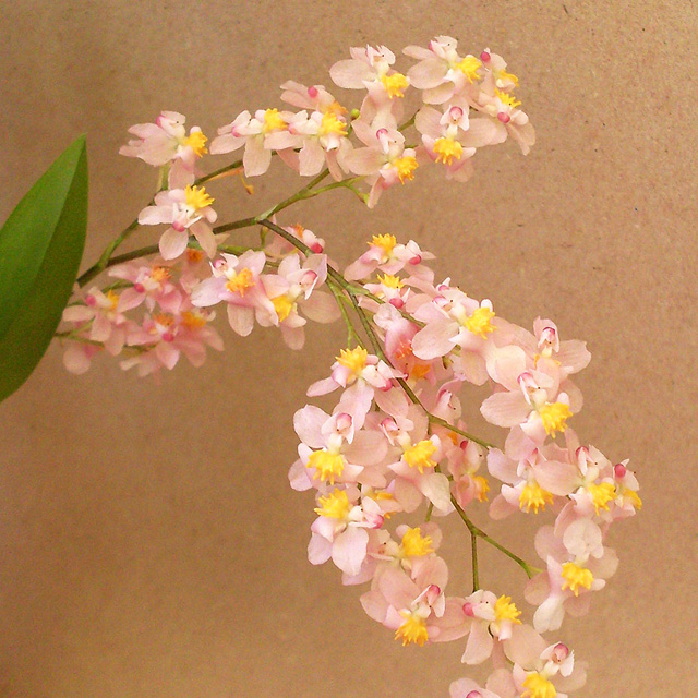 Oncidium Tsiku Marguerite 'Glory'. Сделав несколько попыток посчитать количество цветков и постоянно сбиваясь со счёта, ограничился тем, что их больше 120. Очередной рекорд премилого растения с забавными цветками.