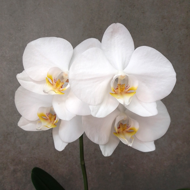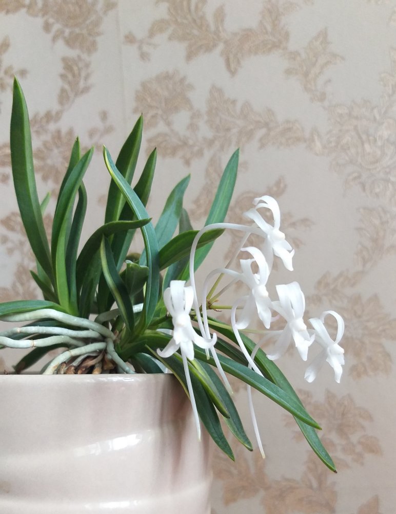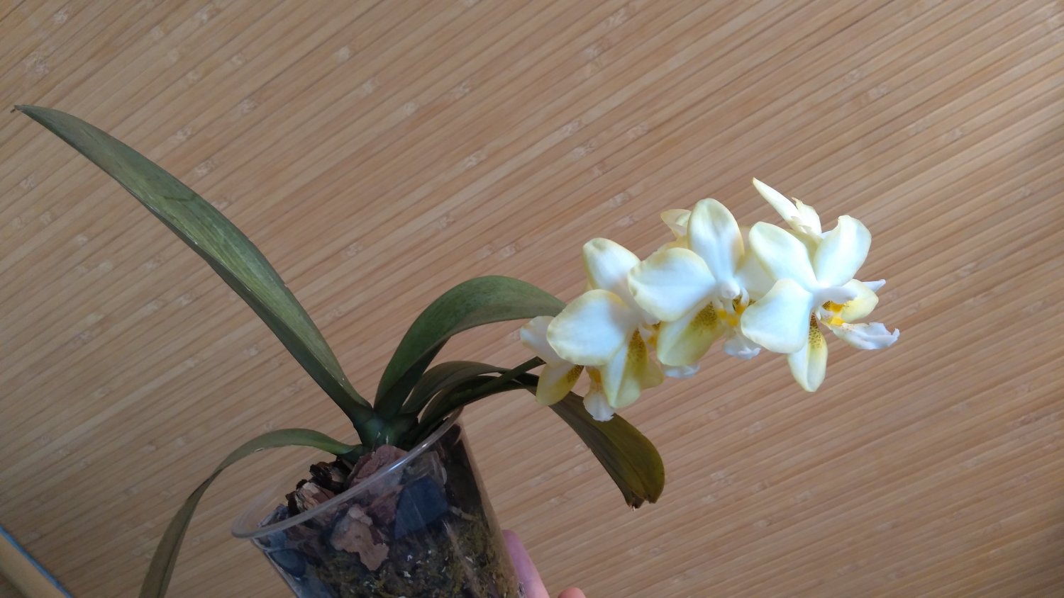 Phalaenopsis hybrid вновь стала растить цветонос. Чистые, невинные, нежные цветки держались меньше, чем в прошлые разы, но всё так же долго, практически четыре месяца. Элегантная простота, классика, красотой которой невозможно не любоваться.