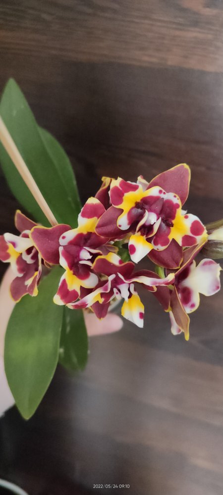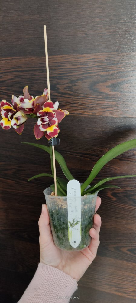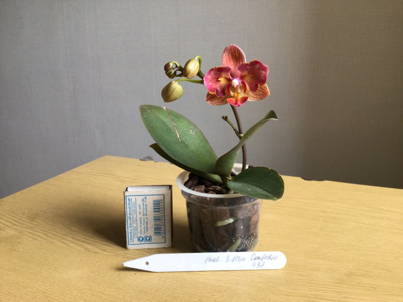 Аромат: есть (слабый, но тяжелый, сладковатый, типичный для большинства гибридных Phalaenopsis)