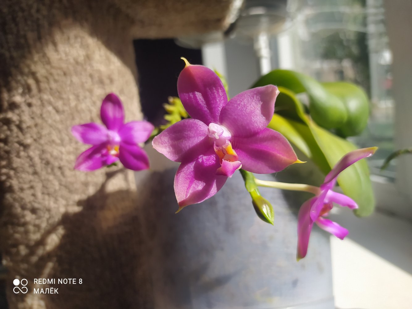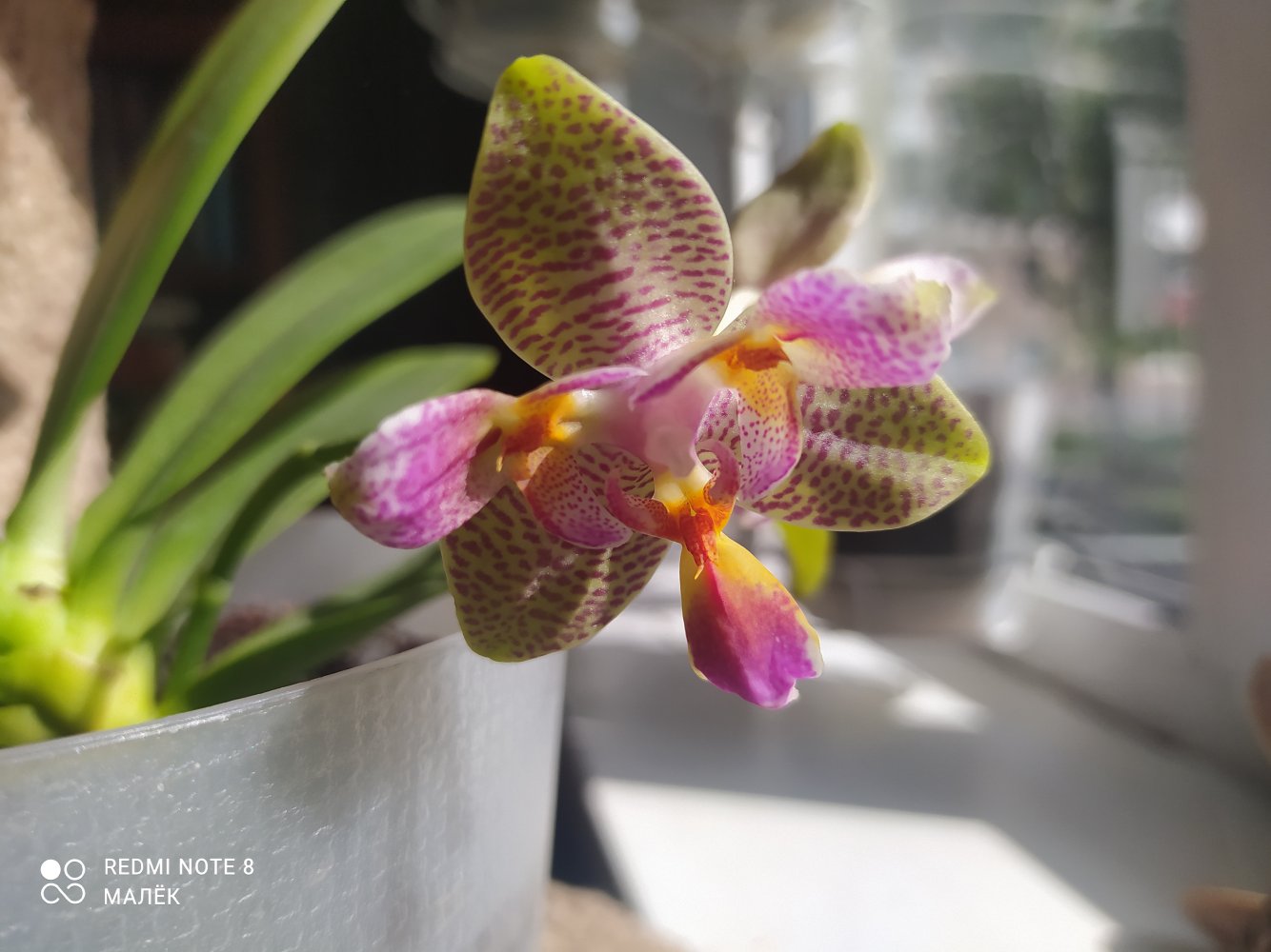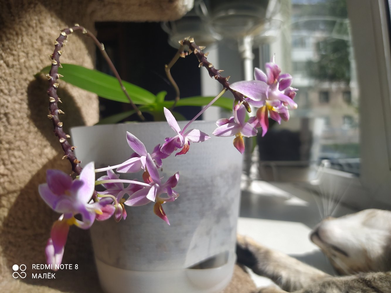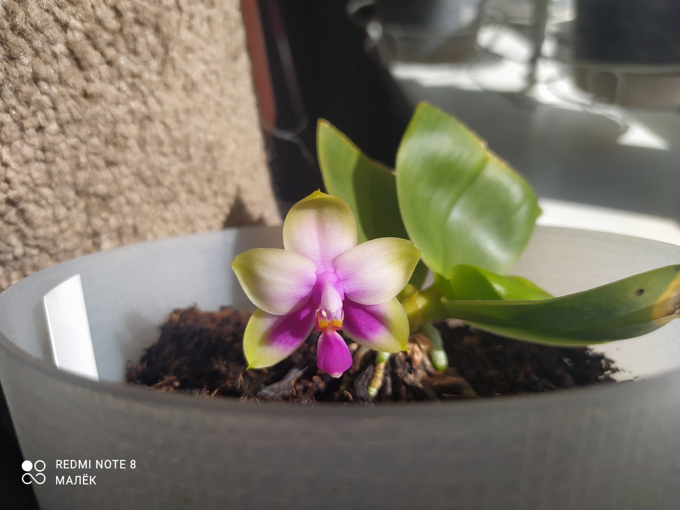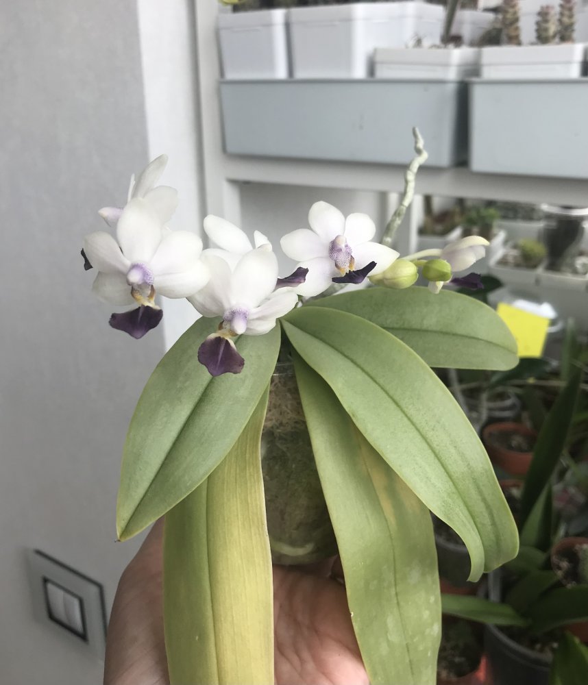Приехала в ноябре 21-го от Эквагенеры.Ну так скажем мягко, страшненькой😏вся в грибке,усушенная,с чехлом .Хотела её выкинуть.Жалко стало,воткнула в субстрат палки.Из чехла потом показались 6 бутончиков,но понятное дело,ничего не получилось.Так и сидели палки без корней вплоть до весны.Весной смотрю почка надулась,корешки пошли.Рост оказался меньше предыдущих.И к моему удивлению,появились бутоны.Росли очень быстро.И какая красотка у меня сейчас😁😜