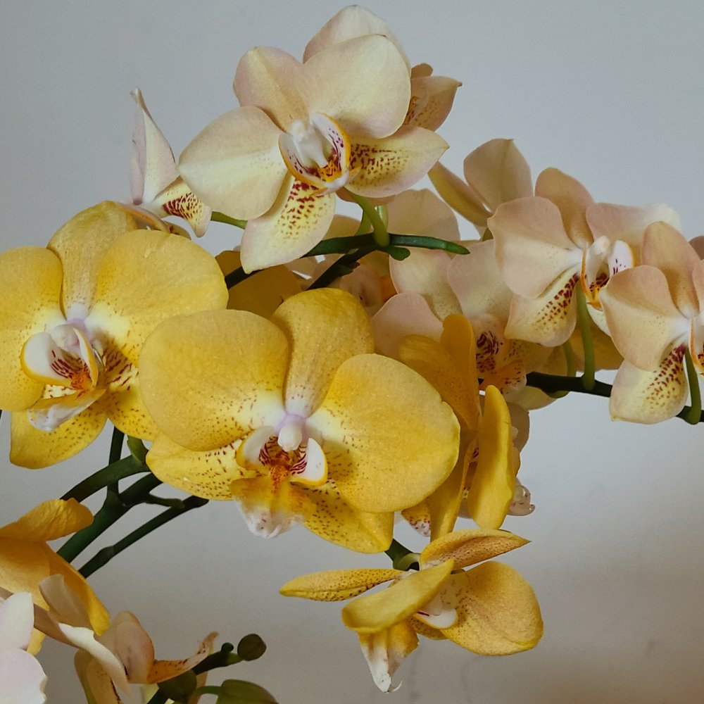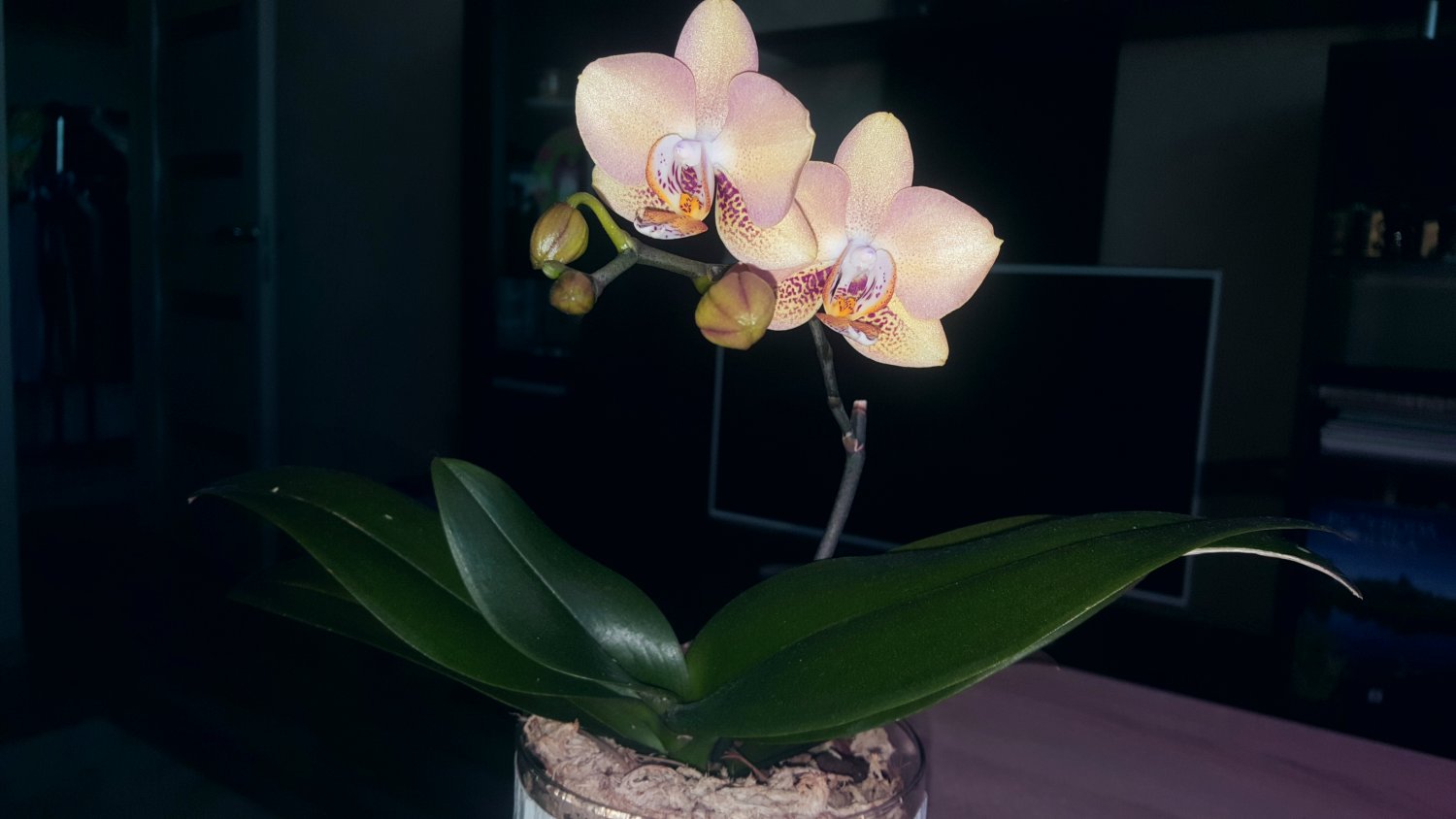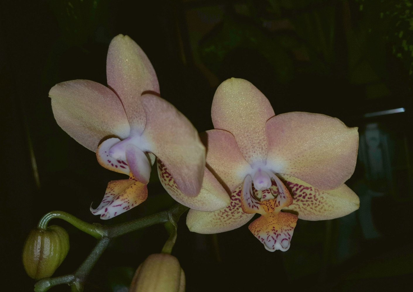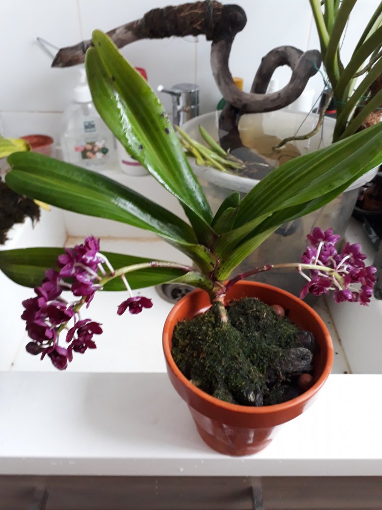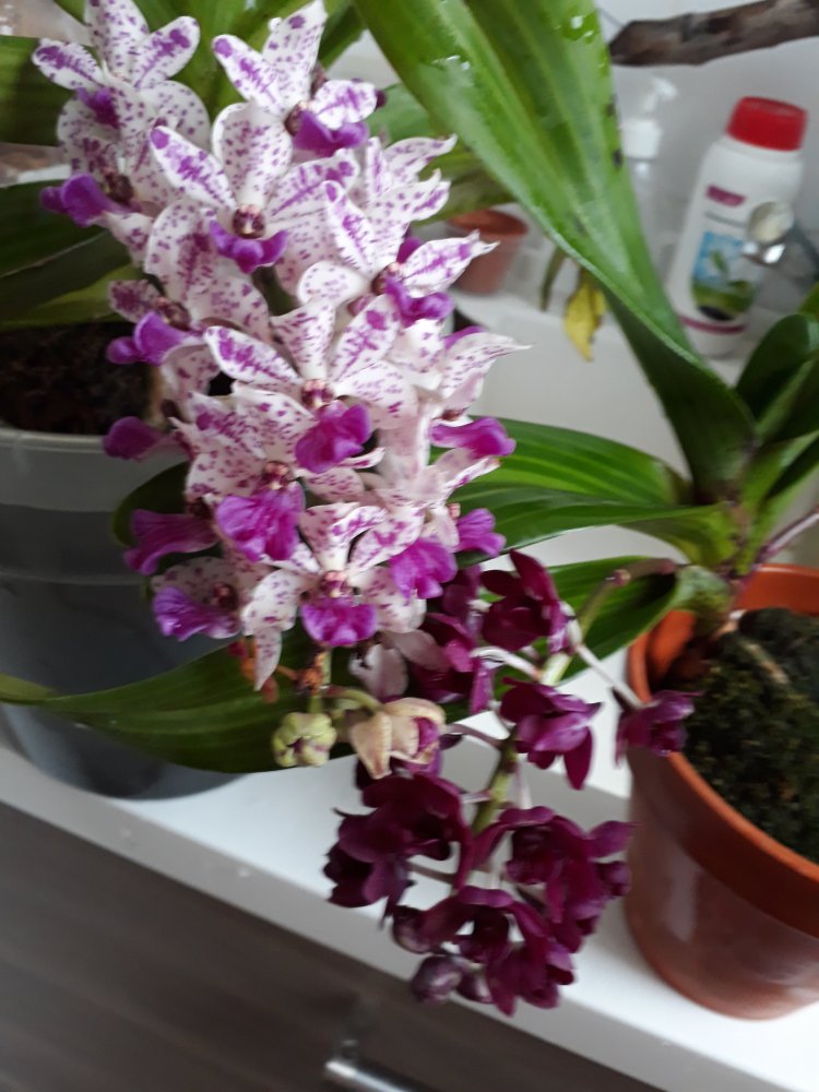 Bl. Morning Glory 'Valentine kiss' в этом году не успела расцвести на Новый год, потому что растит поочередно 4 цветоноса с новых ростов (в прошлые годы растила по 2 новых роста за сезон). Беспроблемнная и ежегодно цветущая крупными ароматными цветами красавица. Сейчас часто можно встретить в продаже Bl. Morning Glory x B. nodosa - это уже будет совсем другое растение (было у меня). Тоже красивое, но оно другое совсем, хотя фото цветения при продаже выставляют именно 'Valentine kiss'. И раскрыл второй цветок Paph. Delophillum (на очереди третий).