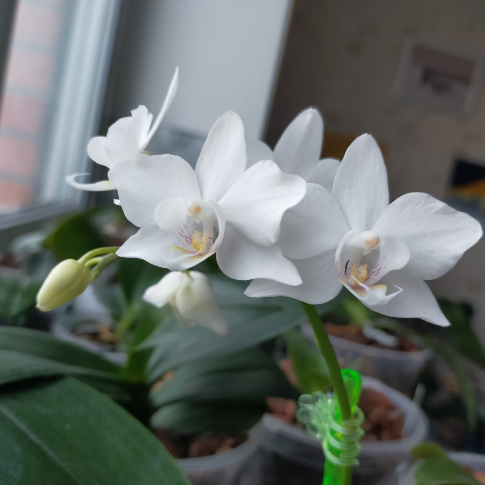 Интересная форма лепестков, грушевидная, на этом всё... Запаха нет. Это первый белый цветок в моей коллекции, я к белому равнодушна, покупала как и некоторые другие из-за губы, которая была представлена на промофото. По факту получен этот вариант цветения