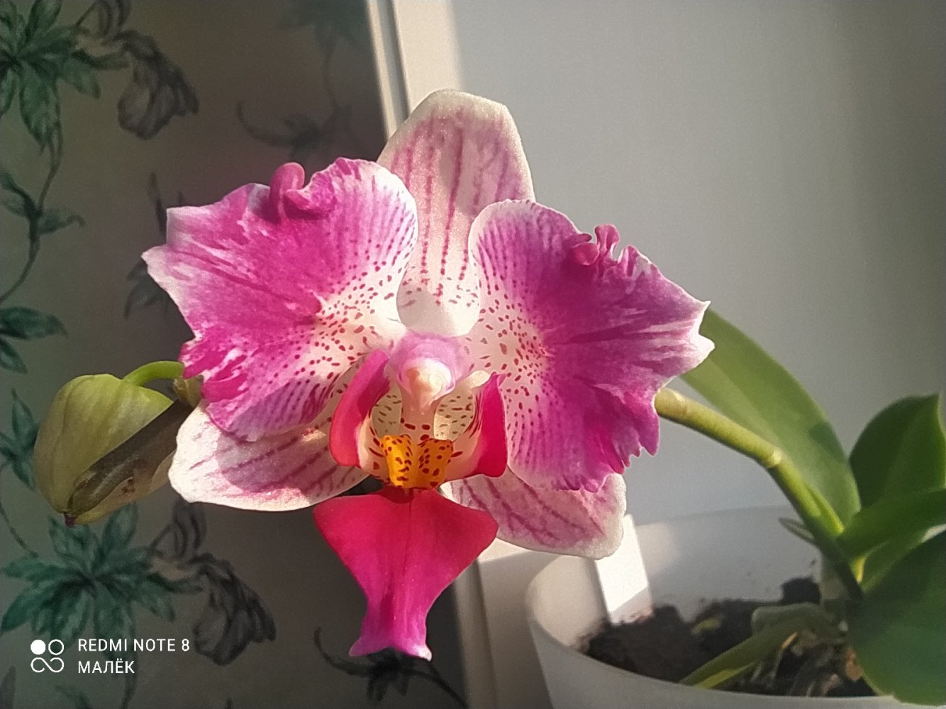Шикарная растень!цветок почти 2 см!😁очень нравится окрас и форма😁доращивает цветоносы и бутошки😁