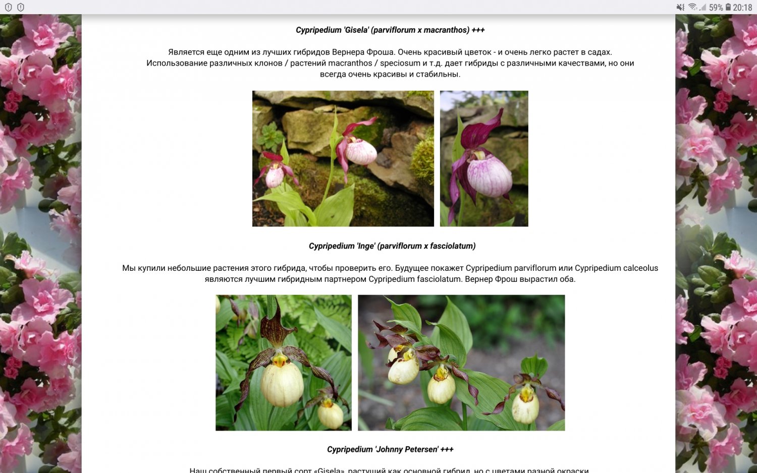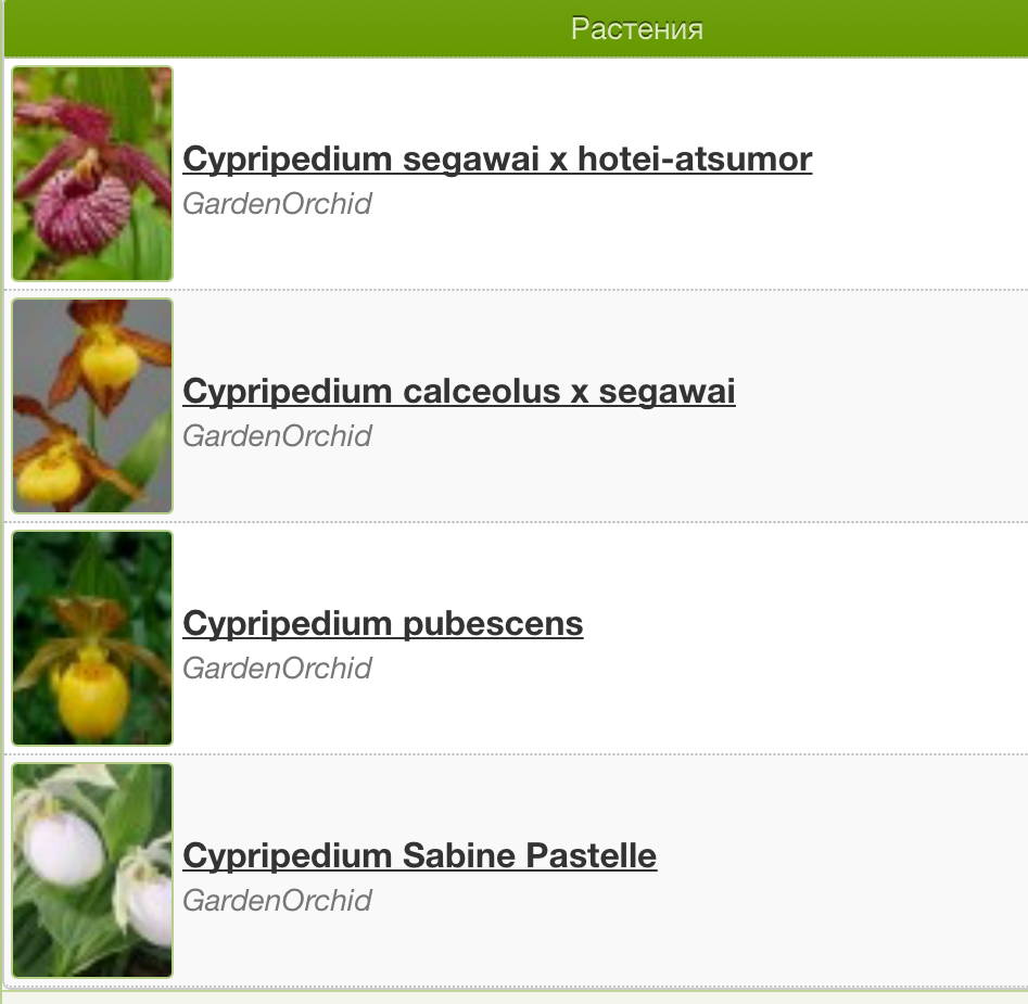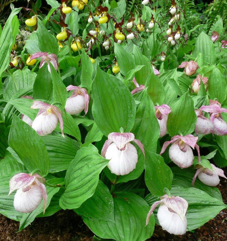 Я бы взяла Cypripedium pubescens, Cypripedium Inge, Cypripedium pink, Cypripedium Gisela. Это весенние.