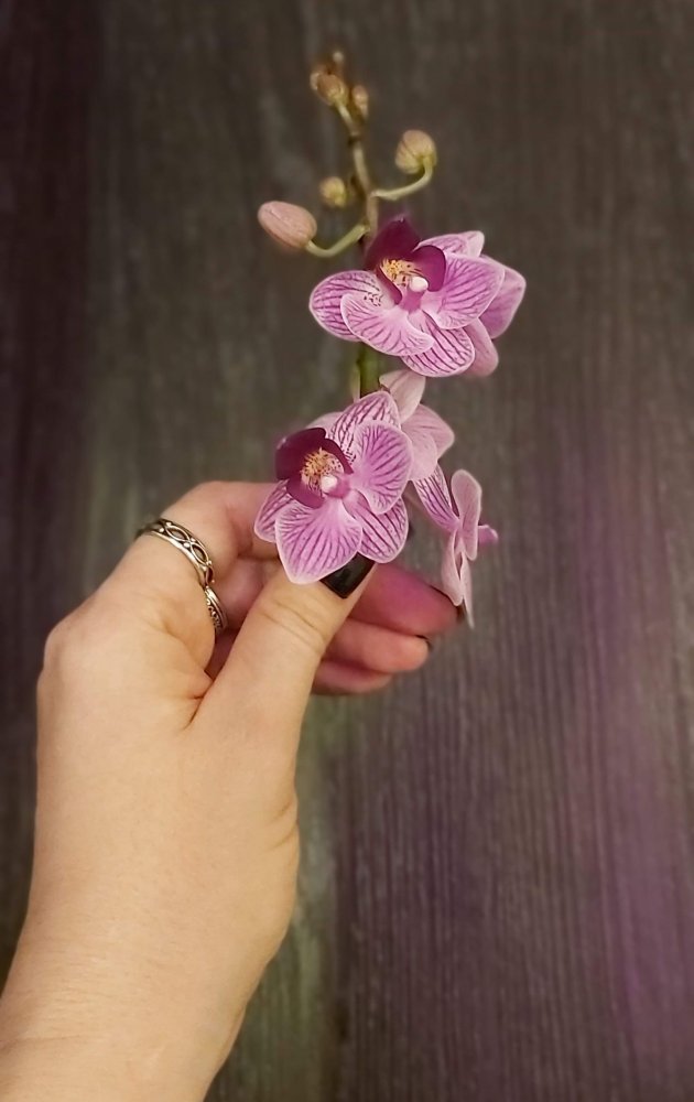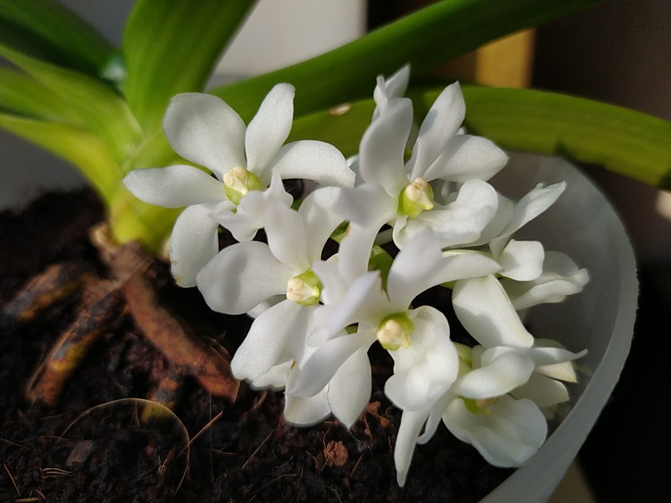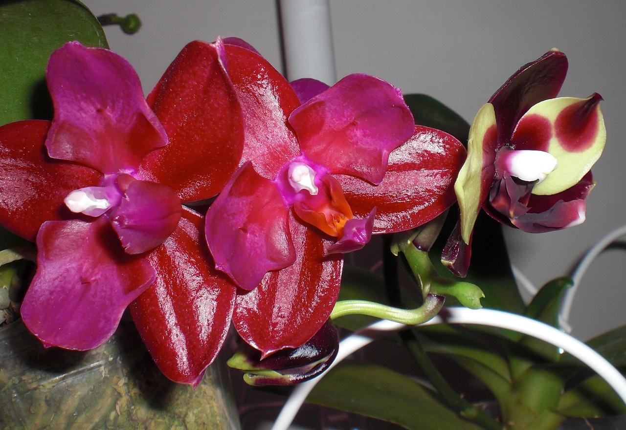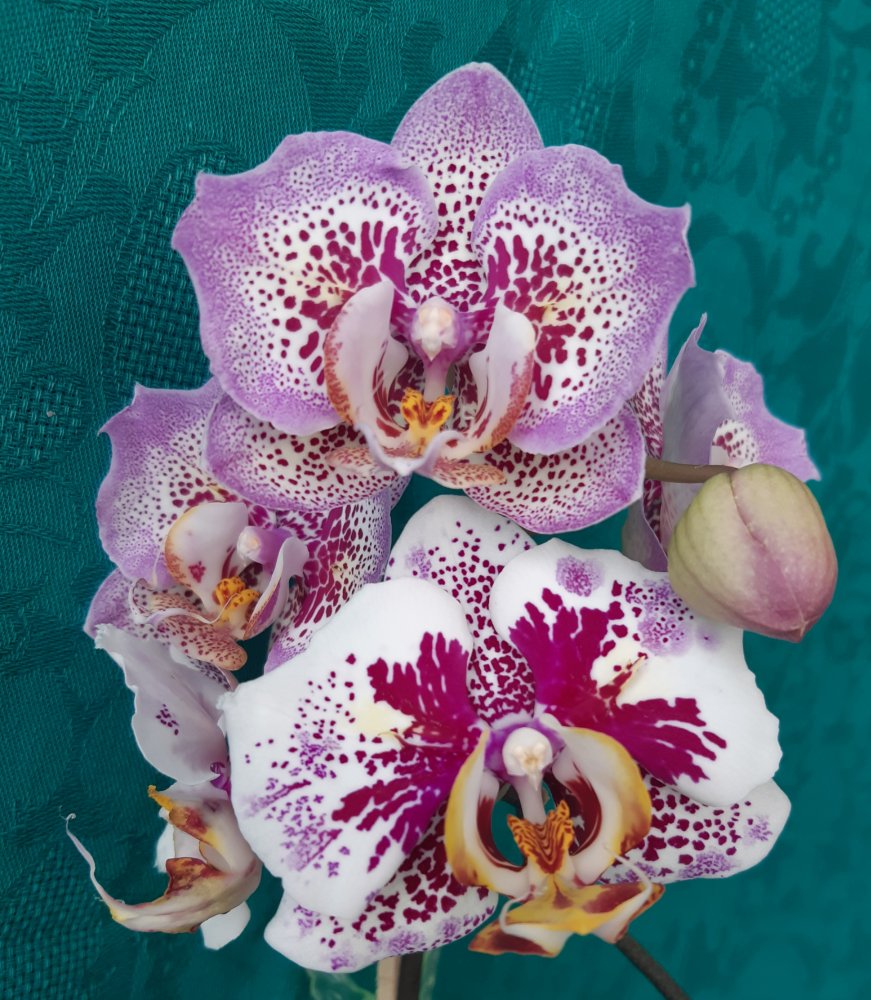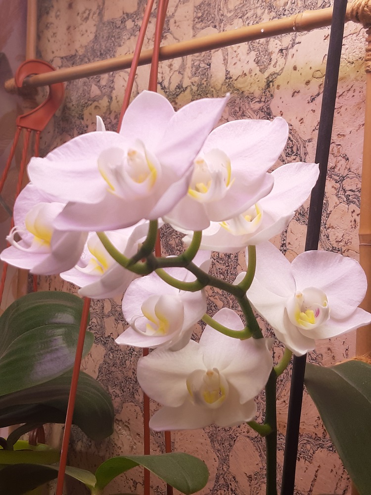 так она цвела в октябре . Лето видимо выдалось очень ей по вкусу - цветы были по 21 см ( только представьте ) в размахе. Но ростов дала много, декабре цвела с роста без чехла ( я думал с ней такого не бывает , но нет- бывает) а сейчас ( о боже ) последние два ( с чехлами) роста снова цветут