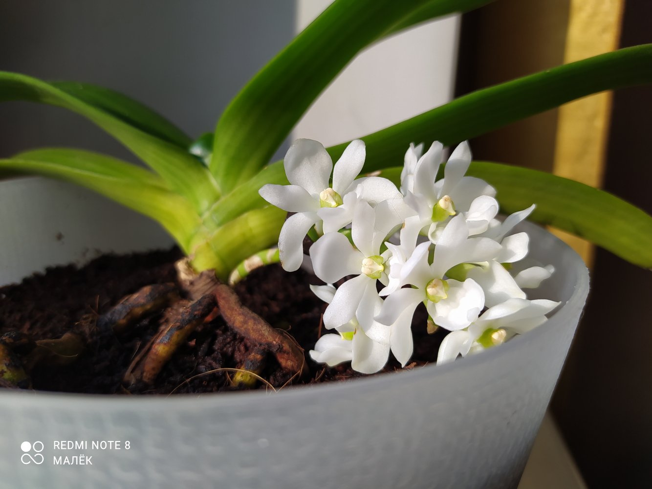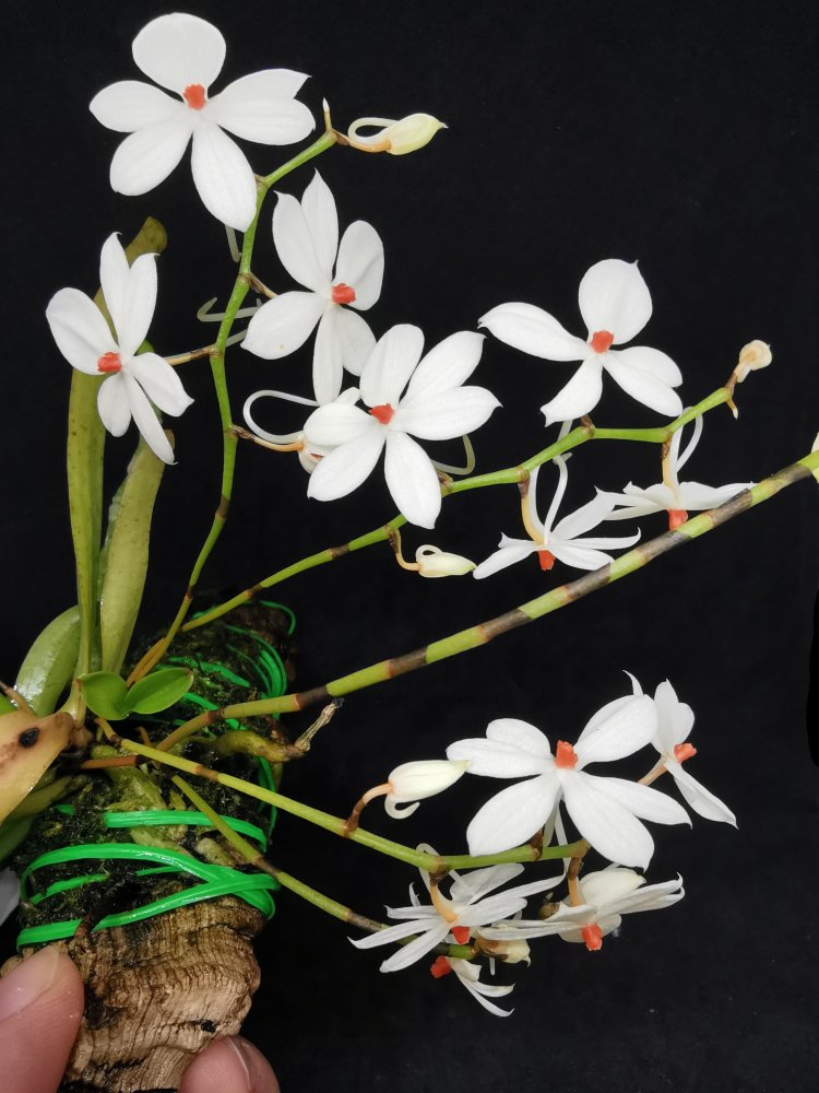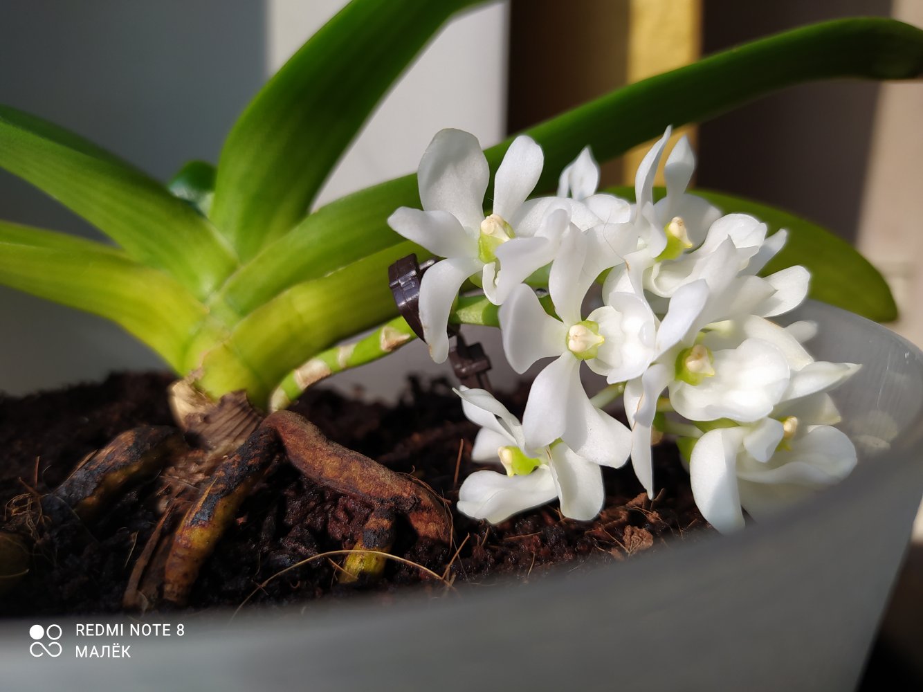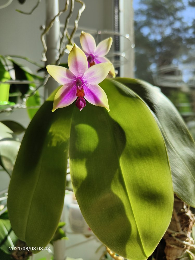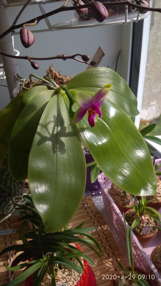 так она цвела в октябре . Лето видимо выдалось очень ей по вкусу - цветы были по 21 см ( только представьте ) в размахе. Но ростов дала много, декабре цвела с роста без чехла ( я думал с ней такого не бывает , но нет- бывает) а сейчас ( о боже ) последние два ( с чехлами) роста снова цветут