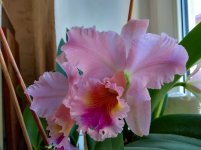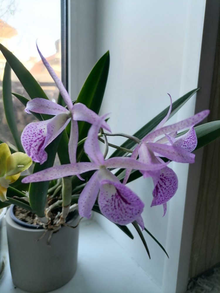 привезла из Москвы в 2018г небольшую деленку неизвестной каттлеи. Это была моя первая каттлея в коллекции. Три года наращивала куртинку и вот осенью расцвела ароматная красотка, что и позволило определить название сорта - Маюми Майкай. Нежные, переливающиеся кристаллами на солнышке лепестки и приятный аромат не могут не очаровать