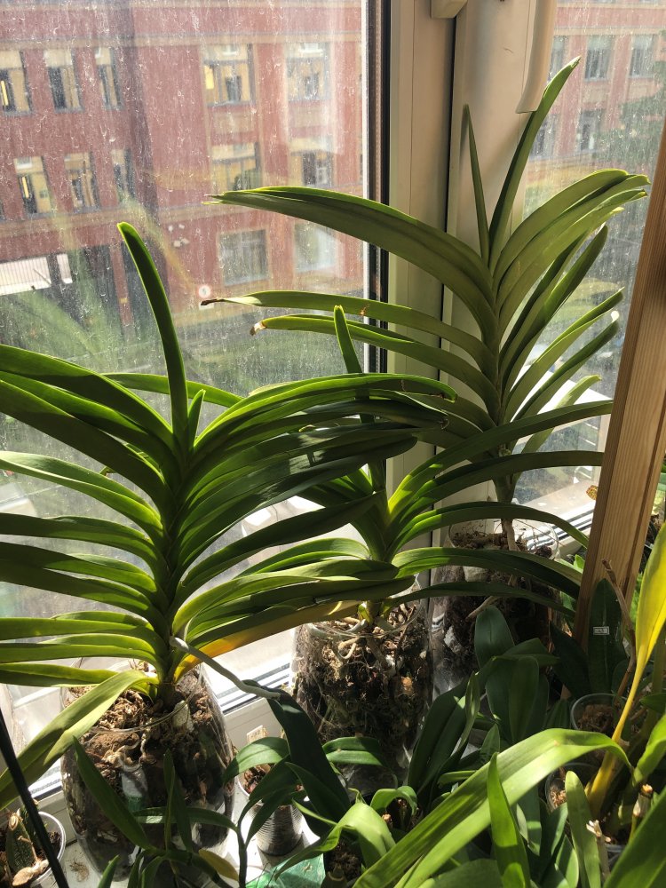 Всем здравствуйте. Обещала Владимиру поделиться моим опытом в выращивании своих Ванд. Прошло 2 года, пока я нашла с ними общий язык. Первую Ванду мне подарили цветущую и я влюбилась. Сейчас у меня их около 30 и еще 40 в заказах. Сейчас все мои Ванды живут в закрытой системе: если корневая не большая- тогда в пластиковом кашпо, если большая- тогда в стеклянной вазе( покупаю в Леруа около 200 руб.) Грунт составляю из того, что есть в наличии: крупный керамзит, пенопласт, чуть угля, мох, крупная кора- главное, чтобы корни дышали.