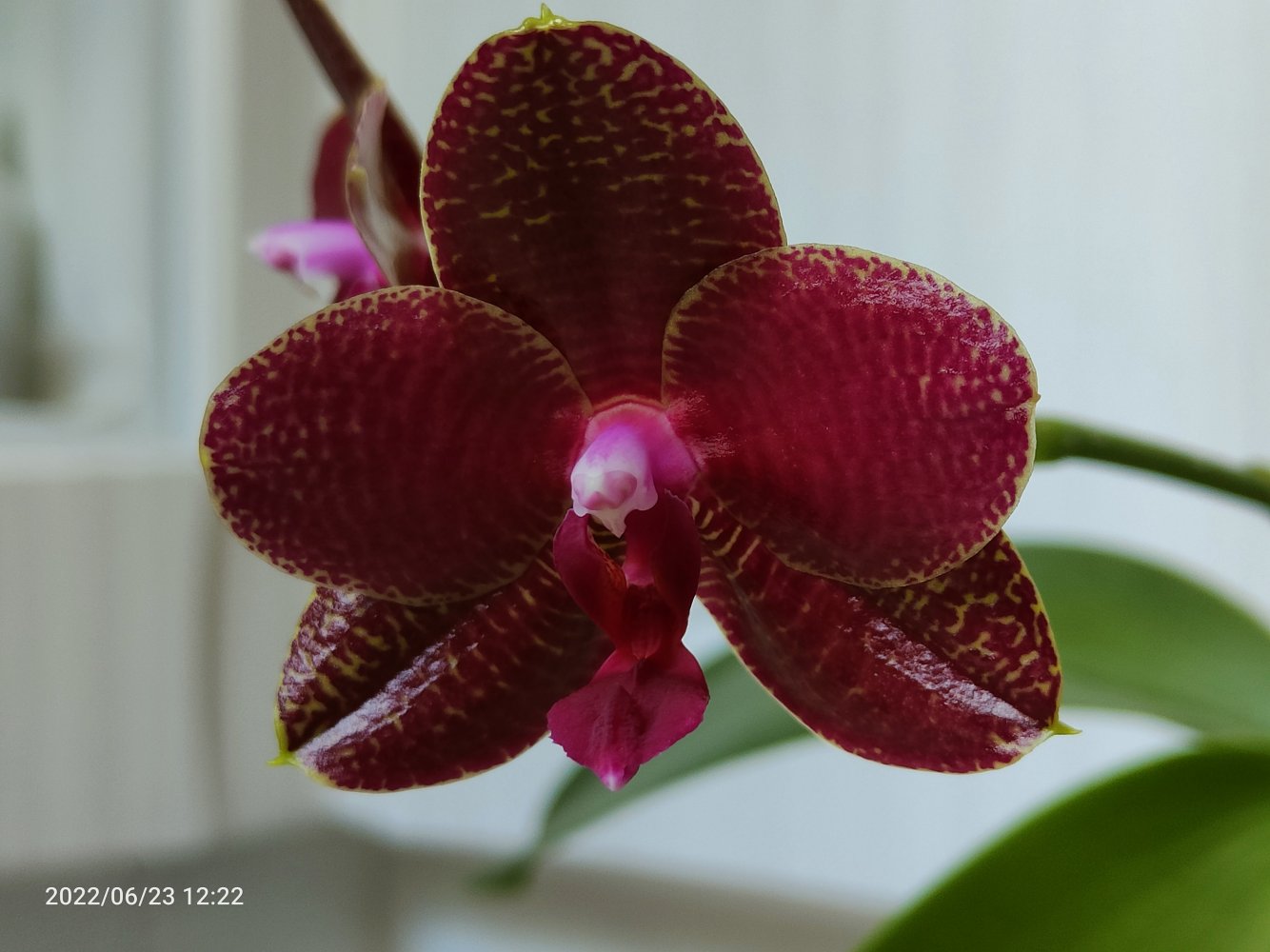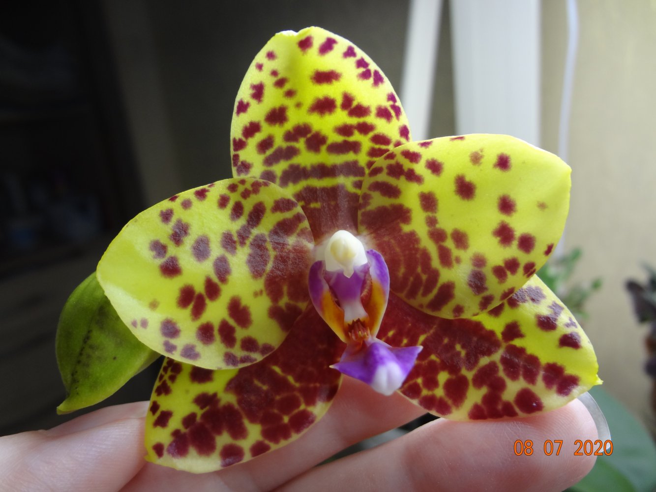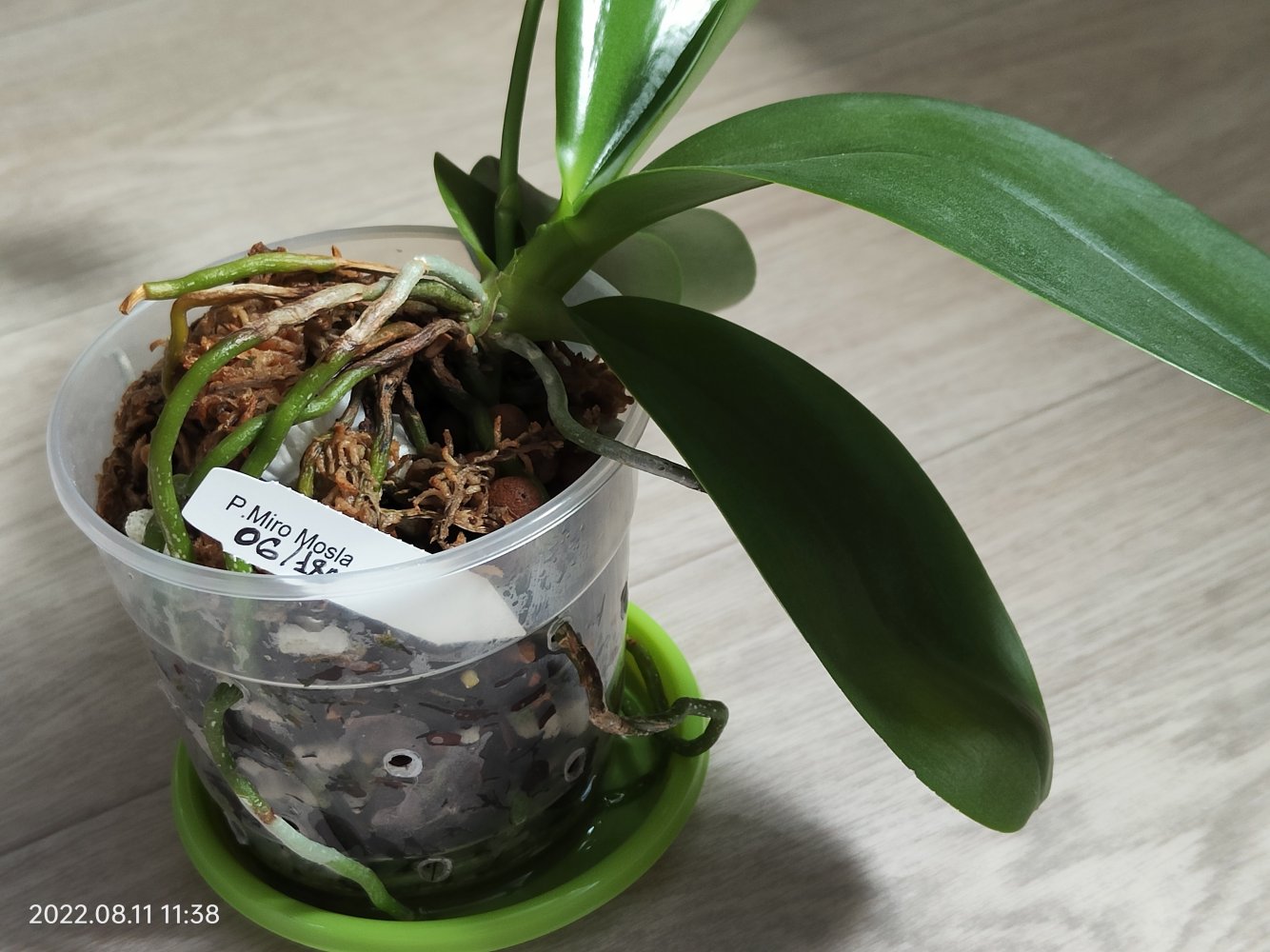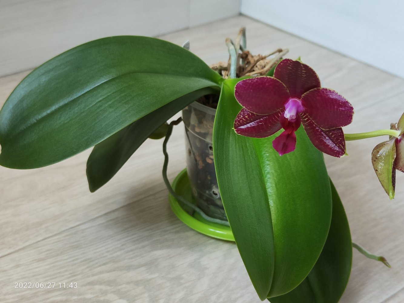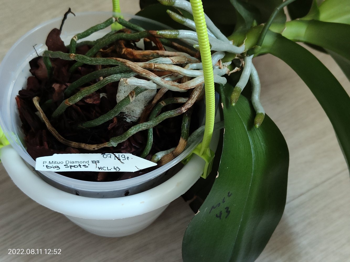 1. Phal. Mituo Diamond "Big Spots" - крупное растение, весной пересажен в горшок 14 см. Цветок в районе 7 см, слегка ароматный. Есть мех повреждения на листьях