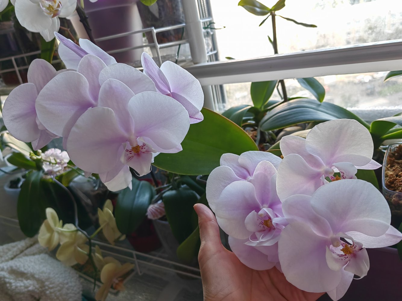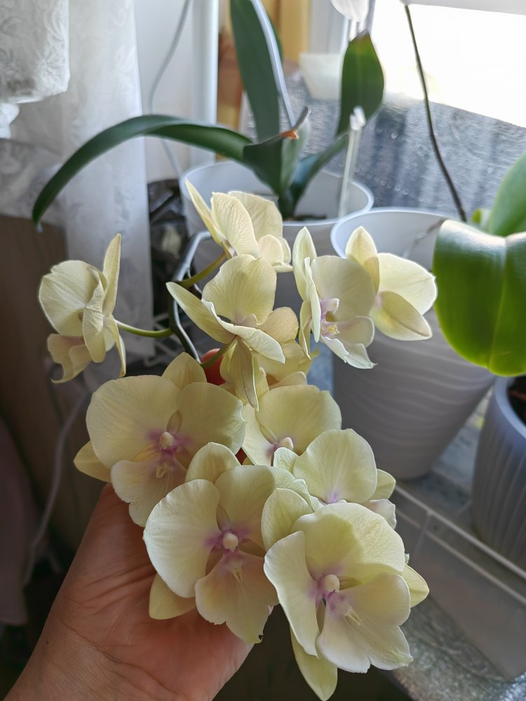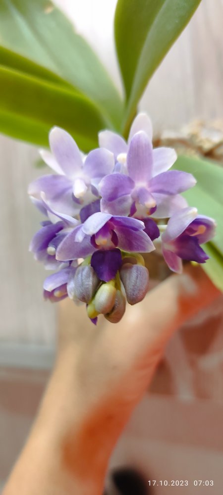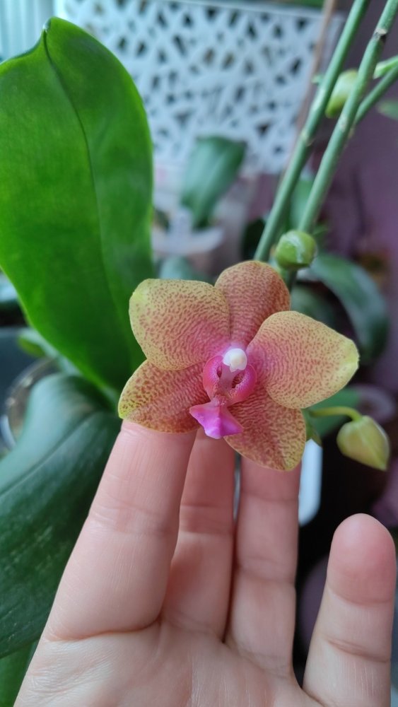 Сегодня впервые зацвёл Phal.Perfume Glow “Rainbow” с Охоты 2023. Был получен в размере 3.5 29 июня. Сформировал 2 цветоноса. Немного удивил. Вроде и похож на фото заказа, но вживую другой. Симпатичный, пока без аромата.Но аромат ещё рано, понимаю. Цветок около 5.5 см. У кого-нибудь цвёл?