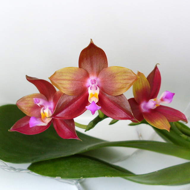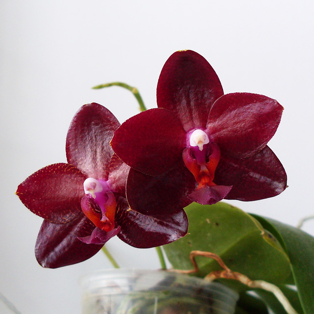 Phalaenopsis Mituo King с королевской щедростью представила в этом году пару лаковых цветков. Цветение длилось два месяца, в течение которых у меня была возможность любоваться и восторгаться их благородным багряным цветом и торжественно-праздничными белыми носами.