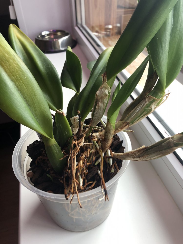 Пересажена в конце зимы, орхиата свежая, горшок 14 см. После пересадки дает новые росты.