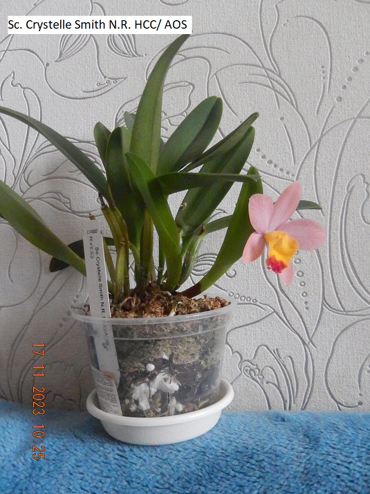 продам мини каттлею Sc. Crystelle Smith N.R. HCC/ AOS от Юченг, пересажена, хорошо перенесла , три направления роста, 14 ростов, три из них новых, один цветёт. два пока растут. 1000 руб с учетом ПВЗ