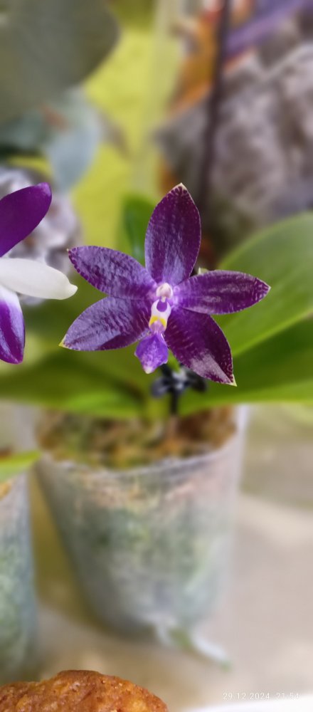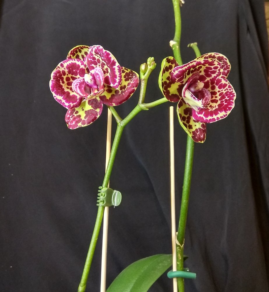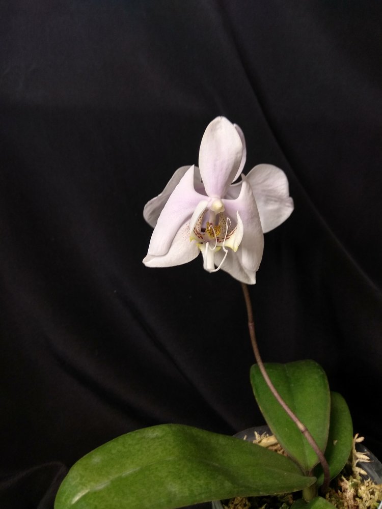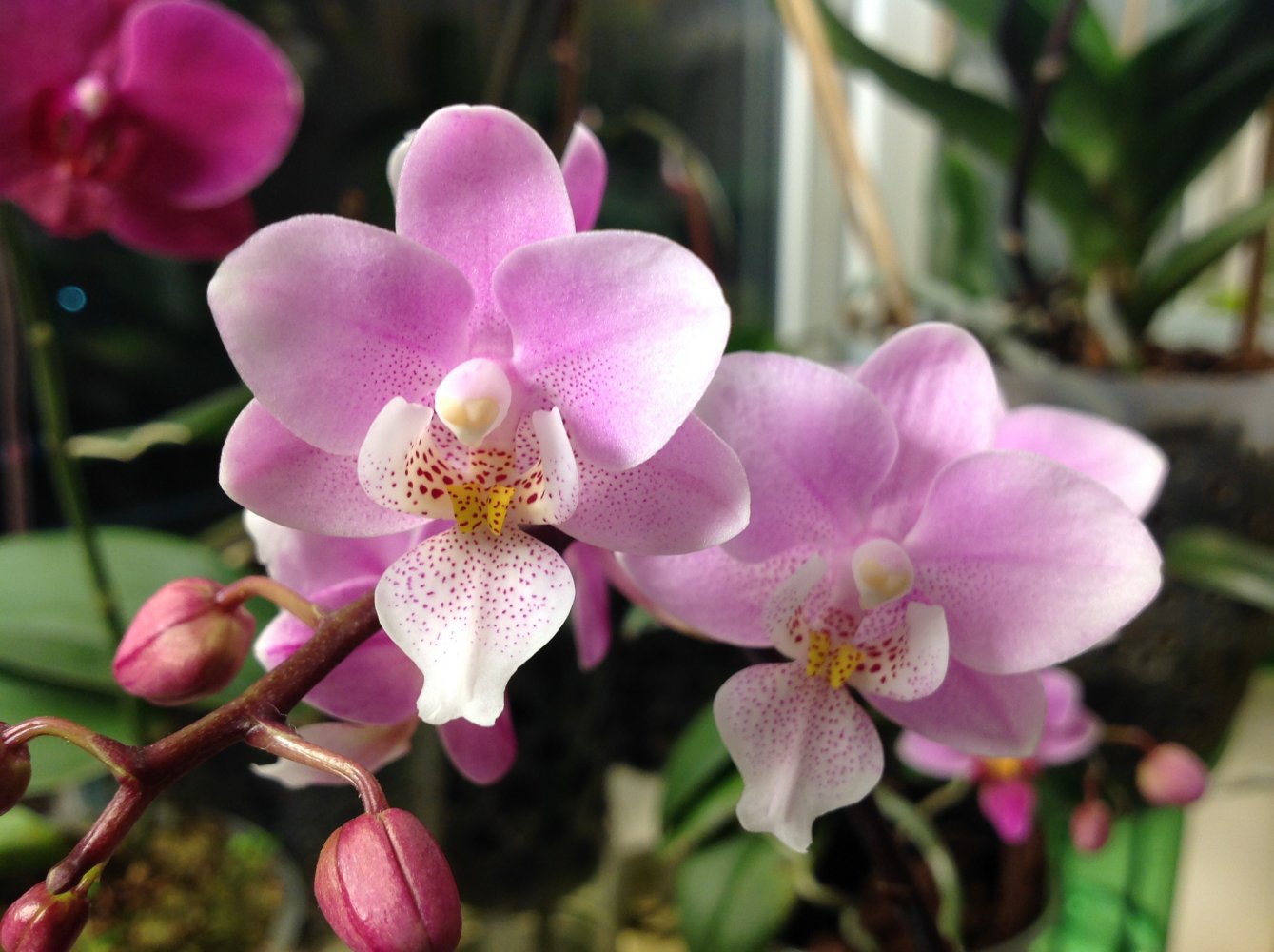 Удивительный красавчик! А как он у Вас рос - на подоконнике, с досветкой, пелоричными бутонами к стеклу?Phal.Jaiho Pink Girl varsity от Yaphon Farm с одной стороны цветоноса дал обыкновенные цветы, с противоположной стороны цветоноса дал пелоричные цветы. Получилось два растения в одном. Само растение миниатюрное. 20см от грунта вместе с цветоносом. Размер цветов 3,5 см. Без запаха. Это второе цветение у меня. В прошлом году цвёл пелориком. Прикрепляю фото при дневном и электрическом свете.