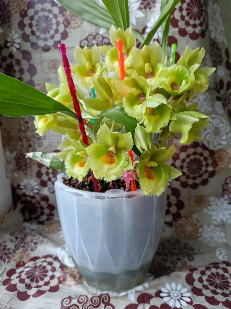 В конце осени пересадила беаллару на фитиль, а ей внезапно очень понравилось - взяла и выгнала цветонос, причём, почему-то из не до конца сформированной бульбы.