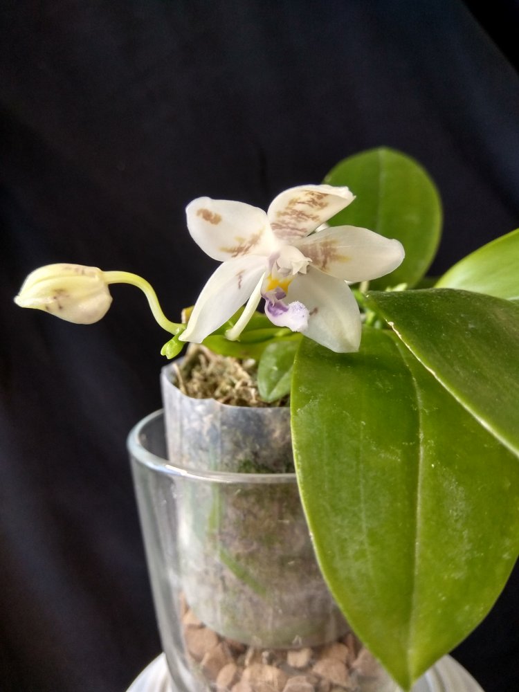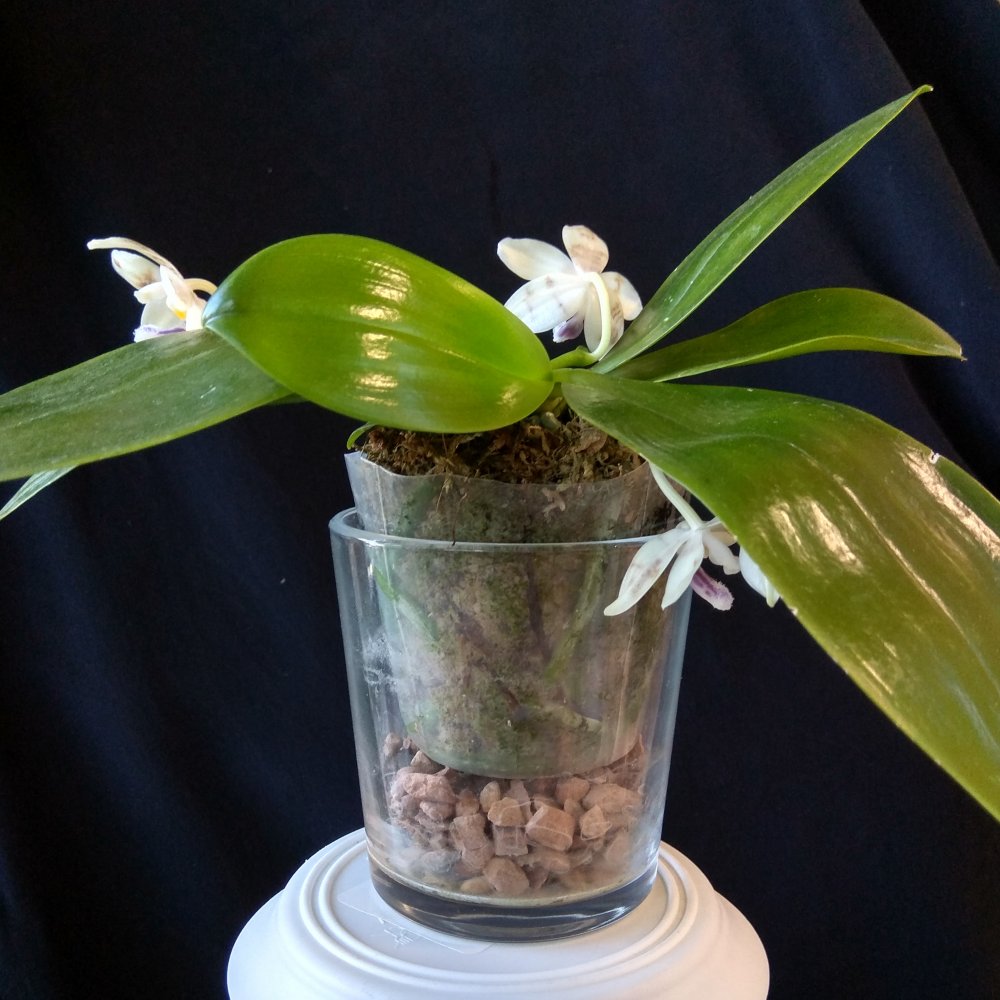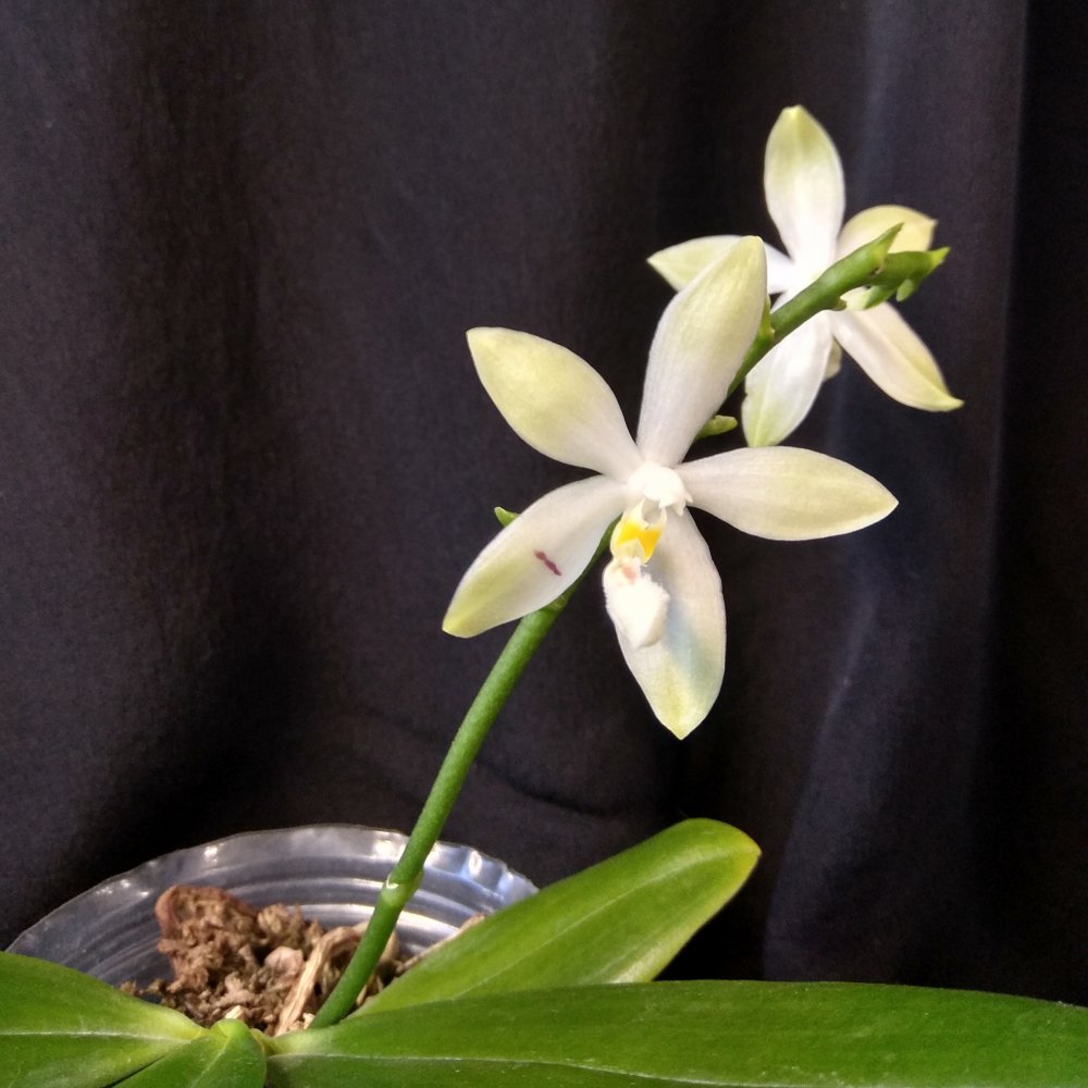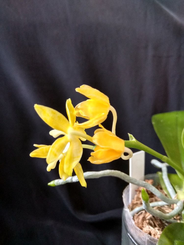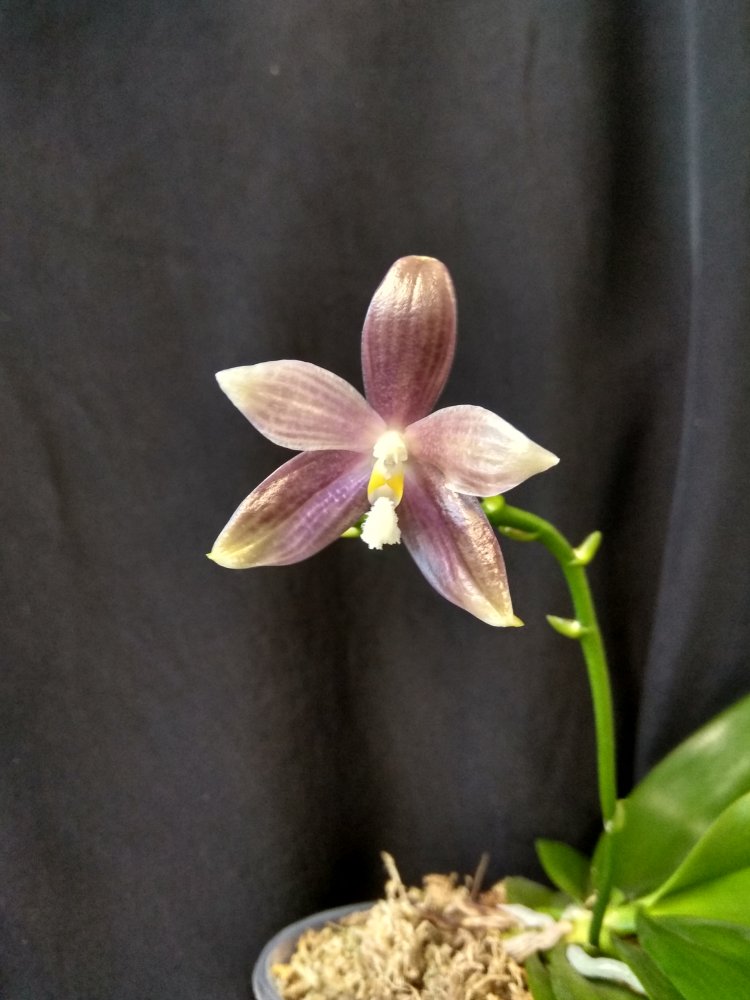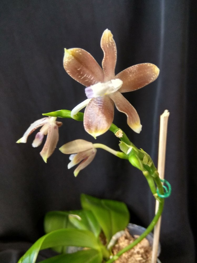 Очень скромный, все цветы как будто хотят спрятаться. Название не помню. Кажется даже, что P.Zheng Min Etching Главное много цветоносов , но все по одному цветочку. Ещё и ароматный.