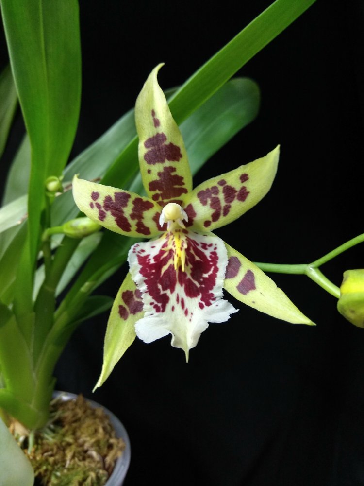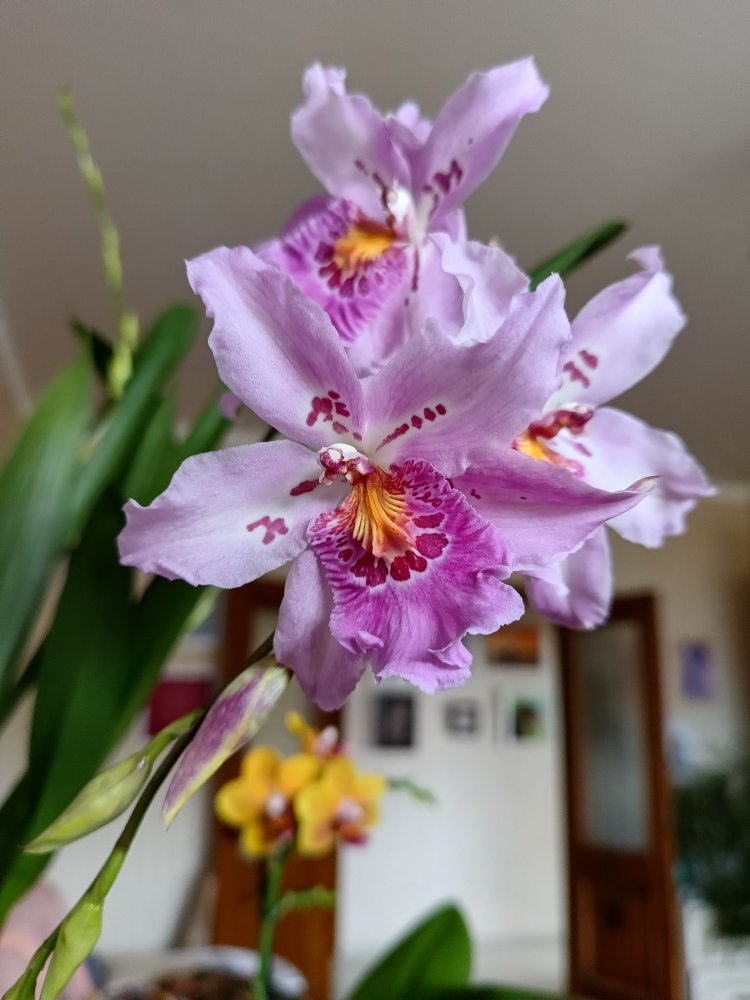 По уходу: Фаленопсис сидит во мху, а Зигонизия в крупной коре, оба цветочка сидят под лампами.